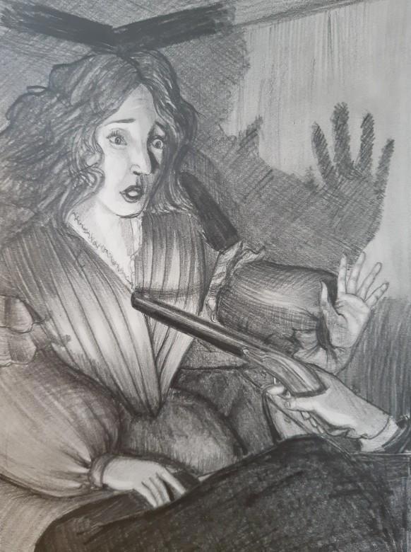 Это - одна из сцен романа. В ней главный герой двигался и разговаривал во сне. Когда же главная героиня решила его разбудить, он спросонья направил на неё свой заряженный пистолет (т.к. он всё время ожидал опасности):