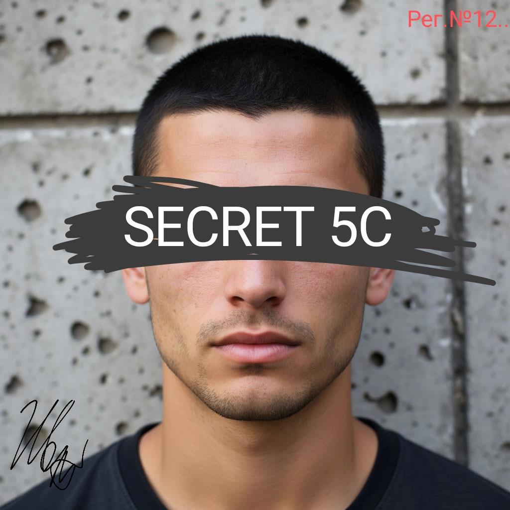 Мужчина, лет 30-40. Короткая стрижка, небольшой шрам над бровью. Лёгкая щетина вместо бороды. Европеоидной расы. Область глаз закрашена черным маркером и с надписью "SECRET 5C"