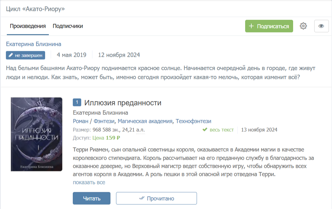 «Цикл Акато-Риору» — это политическая сага, в которой магия калечит души, а стремление к контролю над другими постепенно оборачивается утратой контроля над собой. Здесь нет чистых побед и «правильных» сторон: система пожирает и своих жертв, и своих создателей, а люди либо становятся её частью, либо платят за сопротивление самым дорогим.