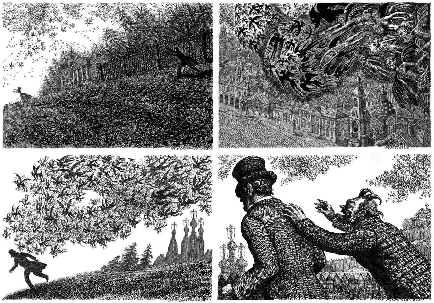 И я вгляделся в этот шутовской кортеж. Истеричный либерал-нарцисс Степан Трофимович. Опереточный злодей Пётр Верховенский. Демонический сластолюбец Ставрогин. Самовлюблённый писатель Кармазинов. Влюблённая дура, приносящая в жертву своим страстям собственную жизнь. Инфантильный губернатор, строящий кукольные домики. Генеральша, ведущая войну за первенство в губернской гостиной. Каждый персонаж словно соткан из гипертрофированного порока, каждый — ходячая карикатура. Это нарочито. Это, особенно на фоне написанного Достоевским до и после «Бесов», бросается в глаза. Но зачем?