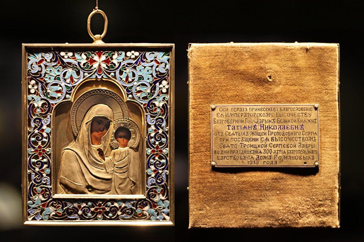 Коллекция обширна, некоторые экспонаты особенно интересны. Например, дарственная икона из Троице-Сергиевой лавры. В 1913-м году состоялось государственное празднование 300-летия Дома Романовых, после столичного торжества августейшая семья отправилась в поездку по древним городам, чем восстановила средневековую традицию паломничества по монастырям России. 24-го мая Николай II с дочерьми и царевичем Алексеем посетили Троицко-Сергиеву Лавру, где помолились у гроба Сергия Радонежского и приняли в дар памятные иконы. Данный праздник стал для страны последним торжеством перед началом Первой мировой войны, последовавшим крахом российской монархии и расстрелом царской семьи. В музее находится икона Казанской Богоматери, на торце которой процарапана надпись «Е-бург, ГубЧК, храм 2/43». После расстрела Романовых икону вместе с прочими драгоценностями передали в Главнауку для продажи за границу. Этой иконе молилась царская семья перед смертью.