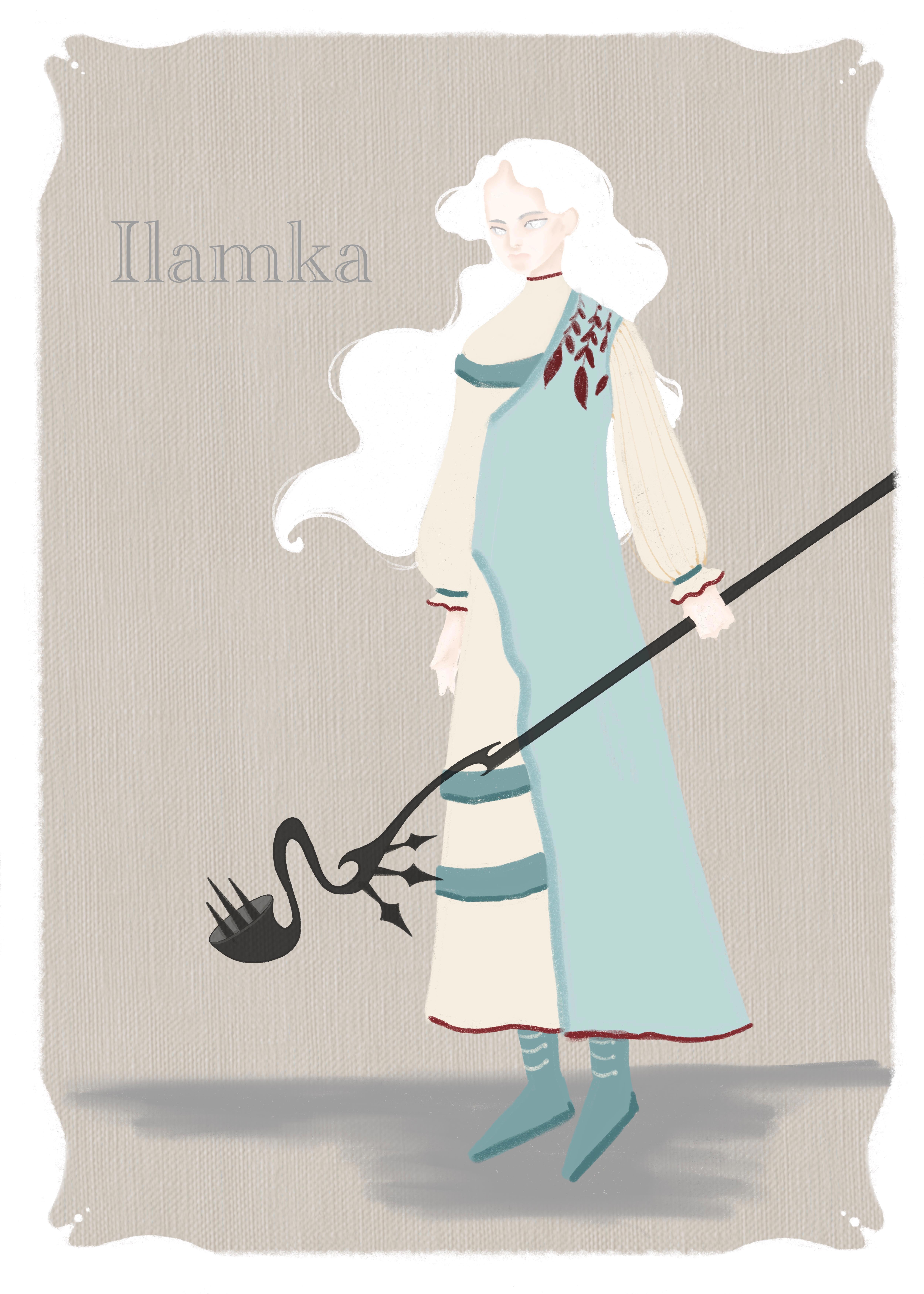 – Агидель, – раздался тихий голос за спиной мага. Прекратив напевать, он развернулся и увидел пред собой ту же красоту, какой был он сам: витиеватые пряди серебряных волос выбивались из сложных кос. Ветер разносил переливы живого металла, роняя их блеск на камни скалы Иниц, а алмазные глаза сверкали и без солнечных лучей. Полупрозрачные острые коготки правой руки сжимали чёрный обсидиановый посох.