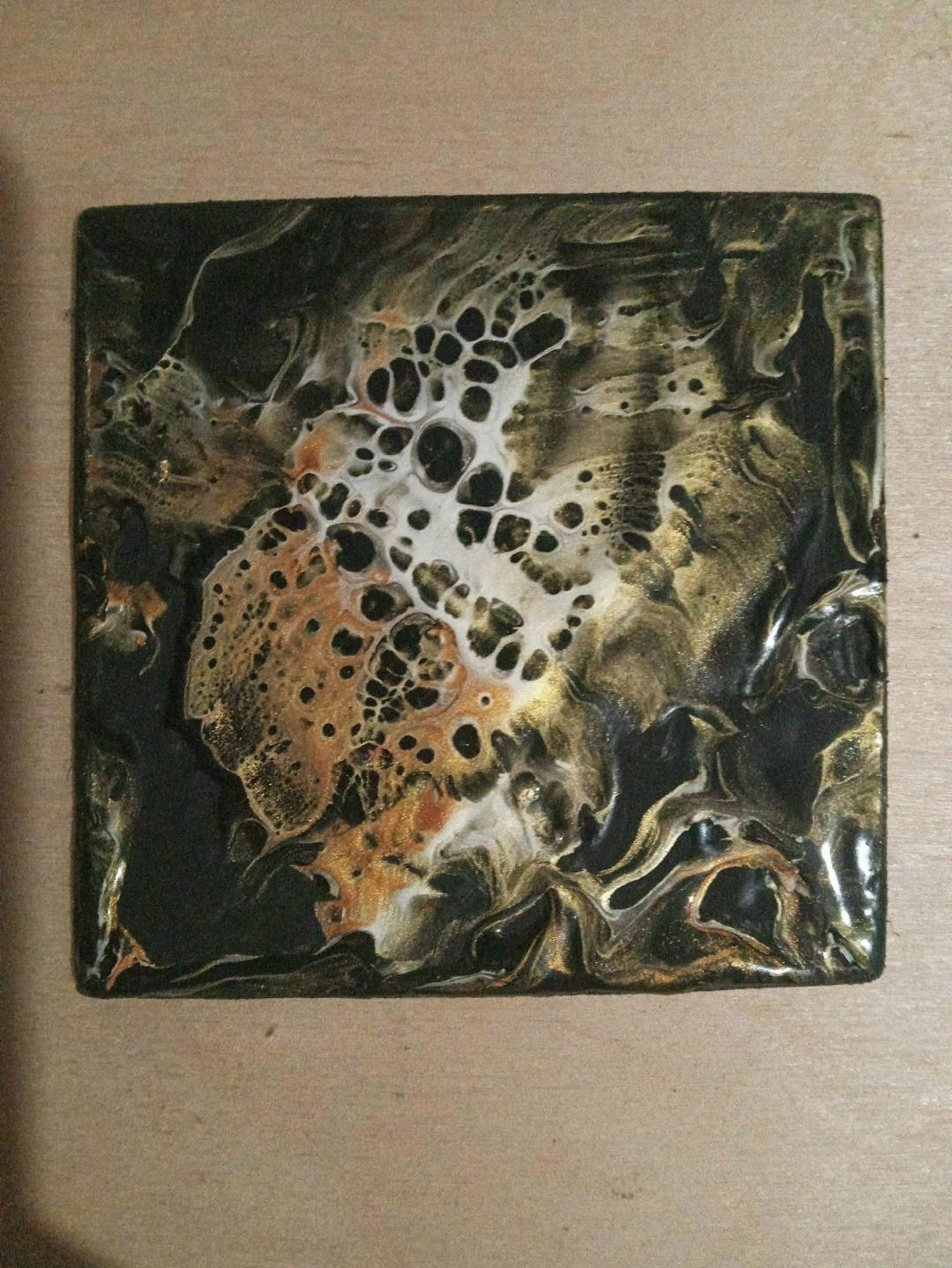 "Леопард Монтесумы". Акрил, арт-флюид, эмали, оракал. 8*8 см. 10.02.2026 г.