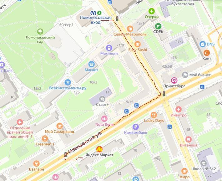 Схема пути от метро: