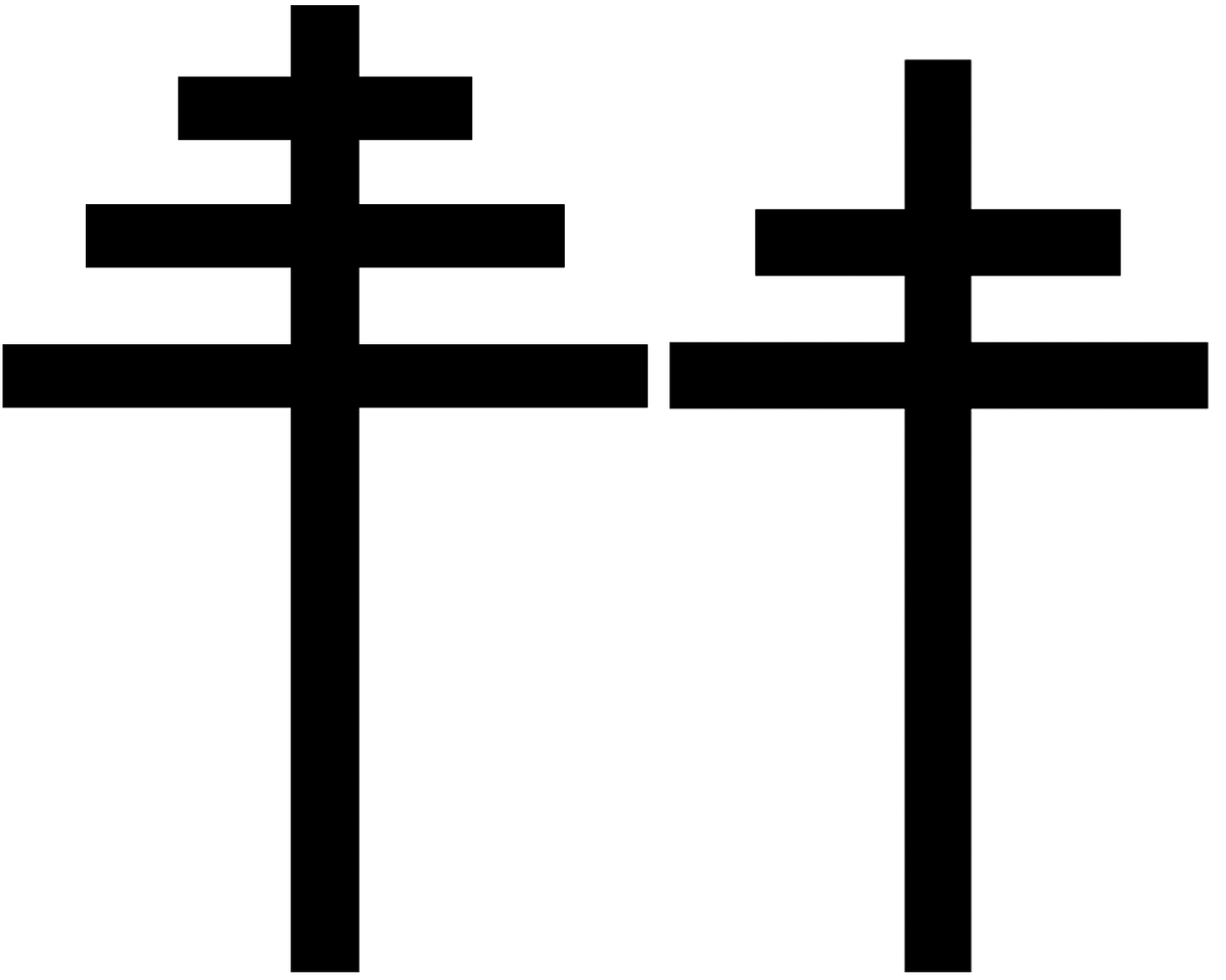 Папский крест и его разновидность архиепископский (с двумя перекладинами) показывают ранг священнослужителя: