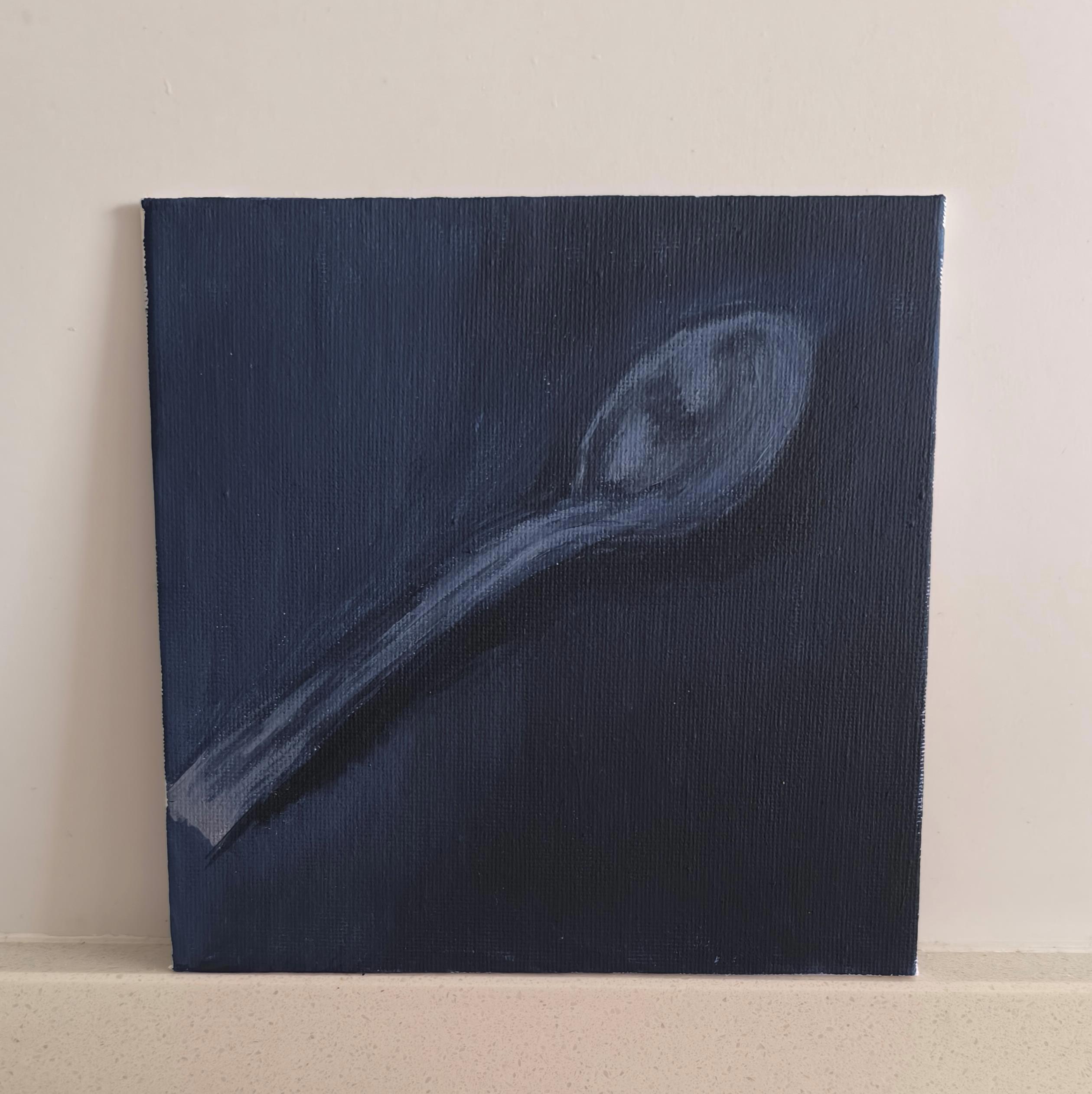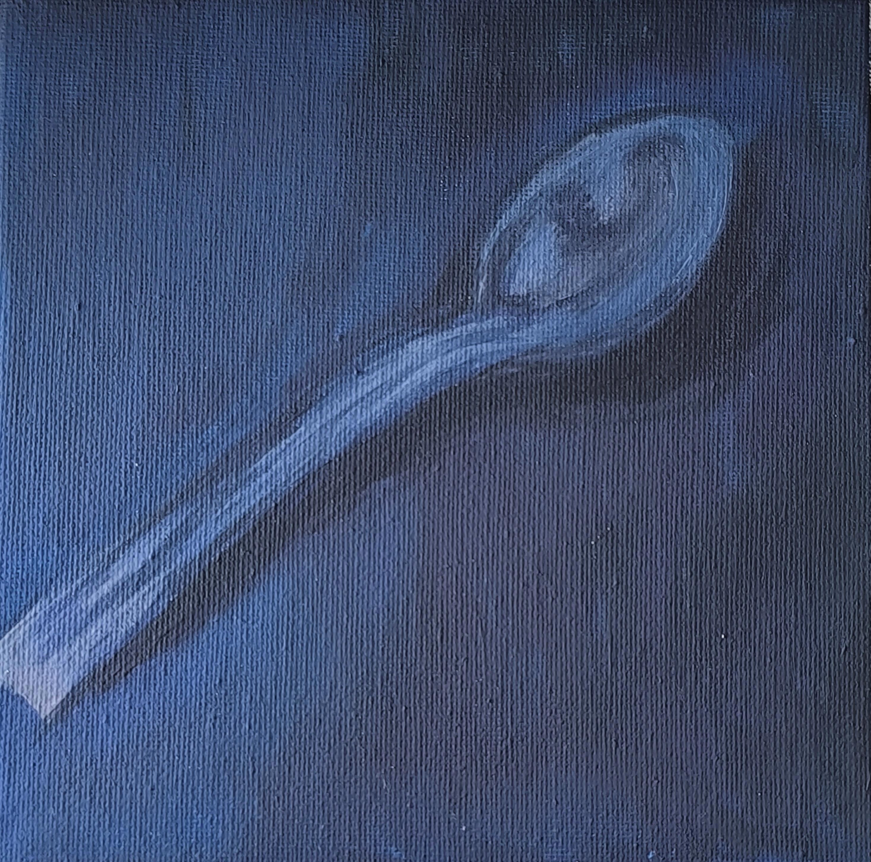 Так вот, вчера я снова сидела и рисовала. Самую обычную чайную ложку на столе. Что-то эта ложка во мне сильно зацепила. Что-то сродни тому чувству, когда наблюдаешь след ушедшей жизни, угасающего тепла. Словно ложка стала вещественным доказательством, что кто-то был, но исчез. Не ушёл, исчез. Ровно с того же места, где был. А эта маленькая бытовая деталь осталась лежать на столе, не имея никакого значения для исчезнувшего. Мне, если хотите, стало жаль этой ложки. От того и такие цвета.