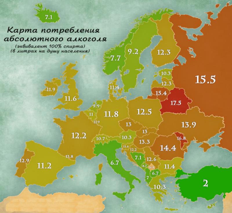 Положительная динамика наблюдается и в большинстве стран Европейского союза, где потребление алкоголя в последние два десятилетия тоже уменьшалось. Это связано с усилением общественного здравоохранения, антикризисной политикой, повышением осведомленности о вреде алкоголя и ограничениями продаж. Хотя в некоторых странах ЕС (Португалии, Испании) потребление немного росло, но это исключения на фоне общего тренда снижения алкоголизма в Западной Европе.
