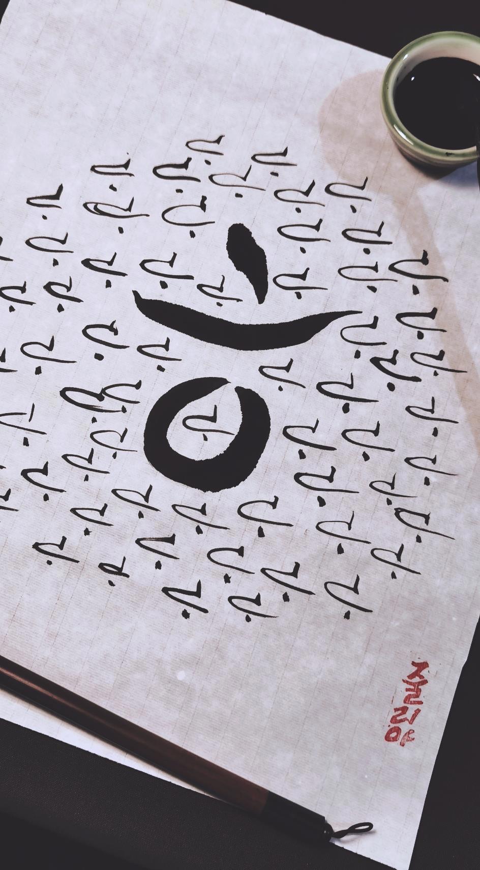 А это я делала афишу для концерта южнокорейских гостей. Старалась передать дух чистого искусства через один единственный каллиграфический мазок.