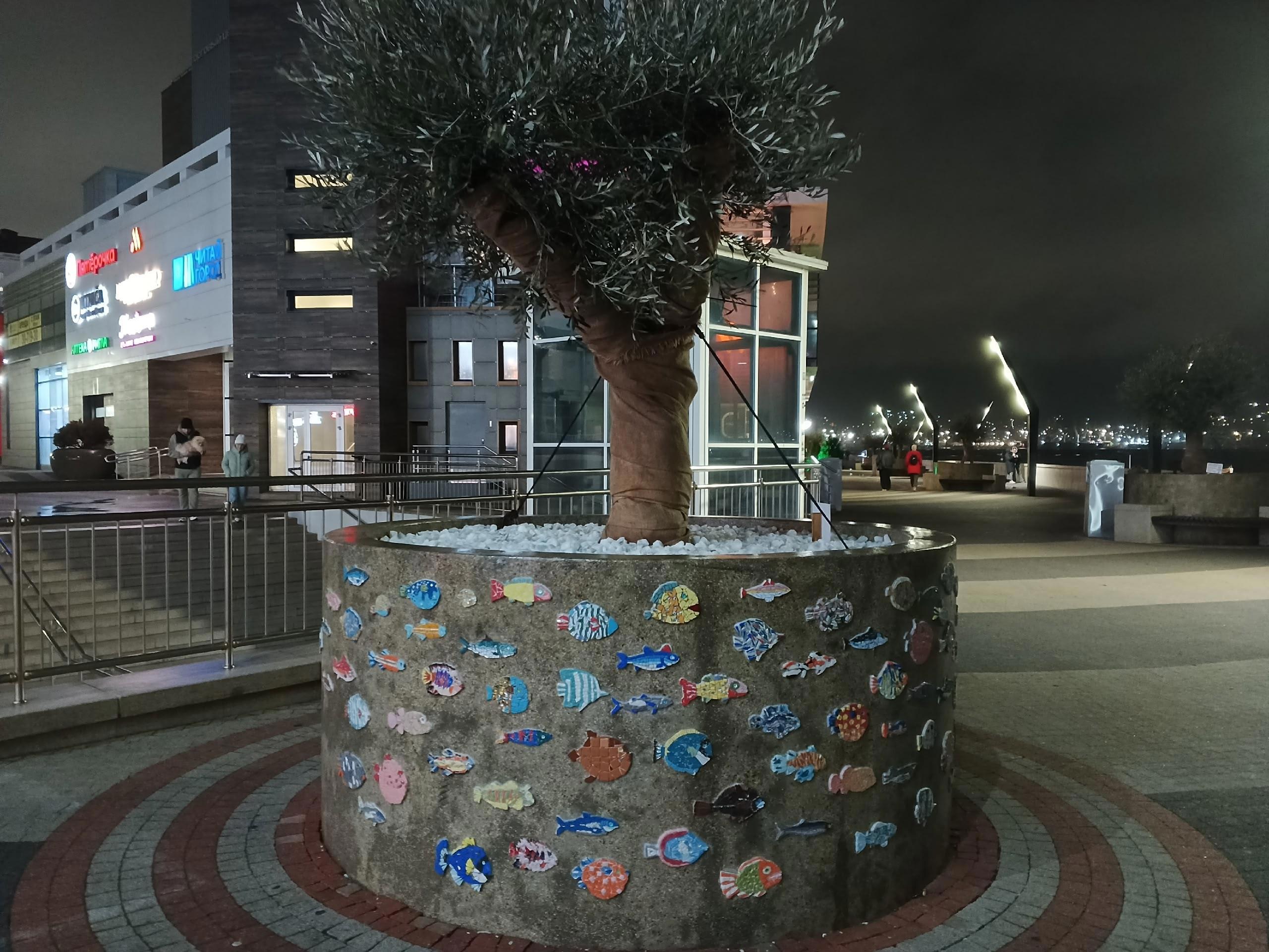 А дальше Мы обнаружили очередную оливу, но вазон украшен десятками рыбок. Это мозаика.