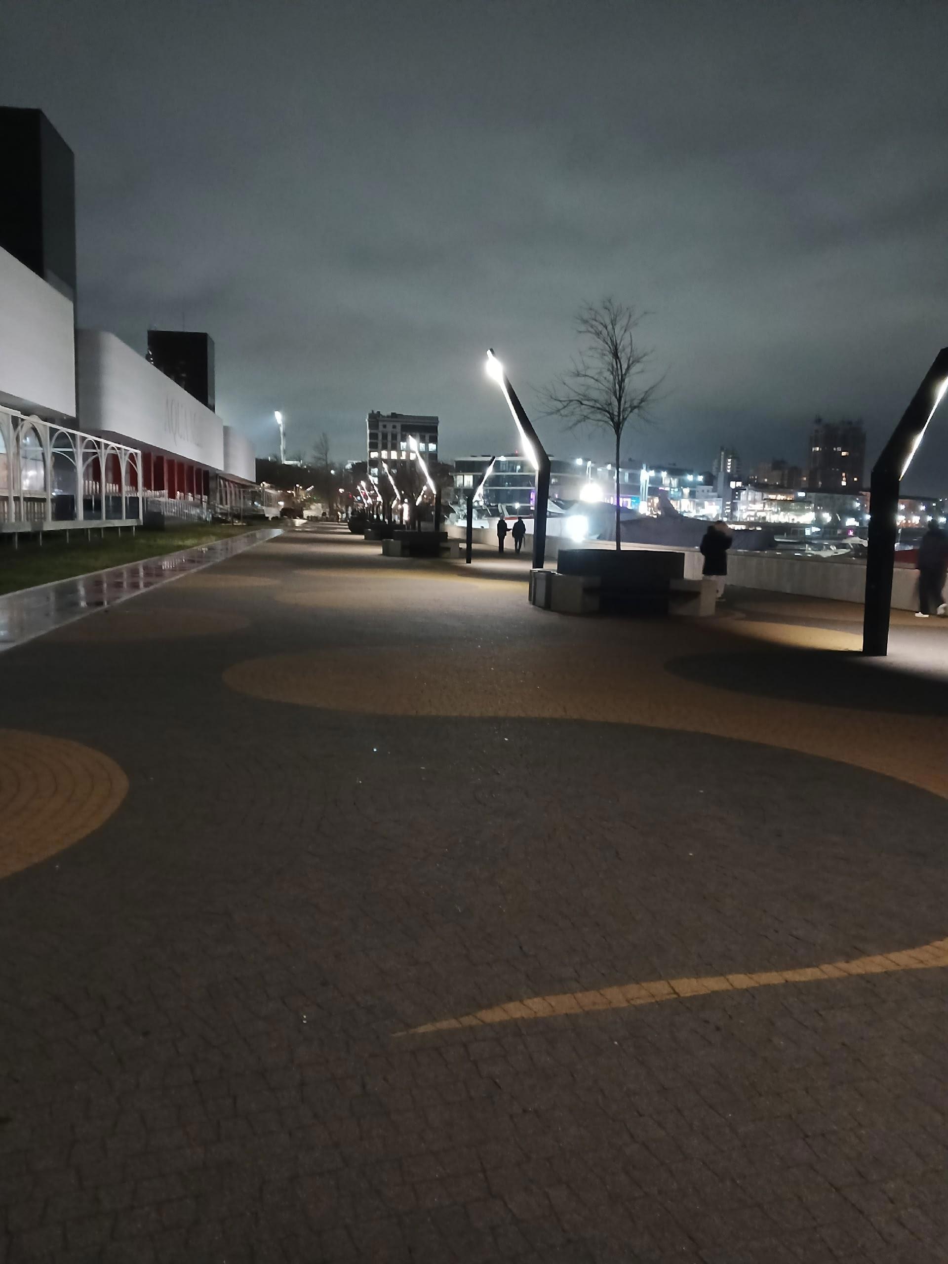 После летнего кинотеатра мы вышли на набережную вдоль которой стоят торговые центры, магазины, апартаменты и гостиницы. Смотрится красиво, но опять... Почему так мало света. Хотя, может это фишка такая и мы чего-то не поняли.