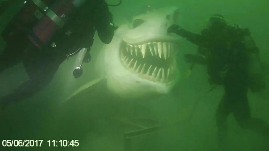 Считается, что этот объект был создан как часть реквизита для фильма 70-х годов под названием «Choc au Lac!», где по сюжету огромная акула наводит ужас на жителей близлежащих поселений. Согласно легенде, про нее забыли на долгие годы, пока один из дайверов случайно не наткнулся на нее в 2002 году, представьте его удивление!
