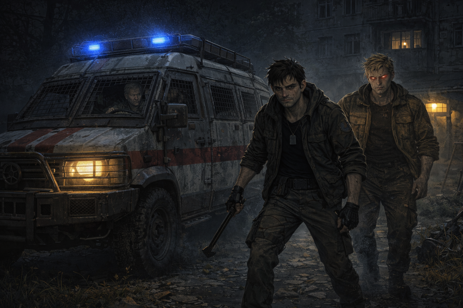И старая «буханка» скорой помощи , которая довезла всех до финала.