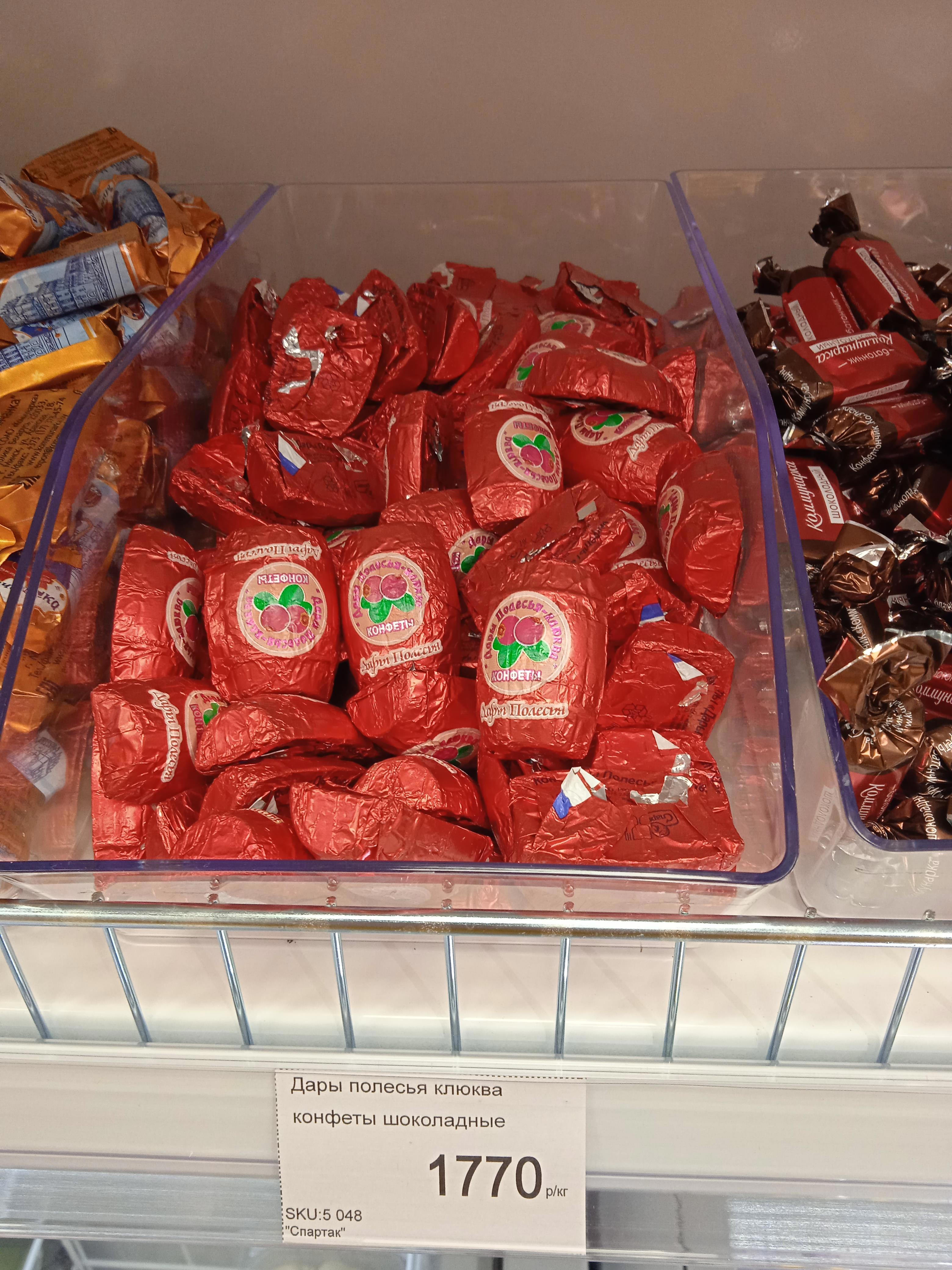 А теперь самые-самые ЛУЧШИЕ из всех конфет! Честно,можно и не покупать все другие из списка, а брать исключительно эти! Но они дорогие... Десять конфеток обойдутся вам в 258 руб.! "Дары полесья -клюква"
