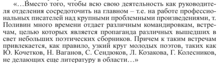 Карпенко С.В. АСТРАХАНСКИЕ ПИСАТЕЛИ И ОБКОМ ПАРТИИ: «ПЕРСОНАЛЬНОЕ ДЕЛО» НИКОЛАЯ ПОЛИВИНА (1964 - 1966 ГОДЫ)