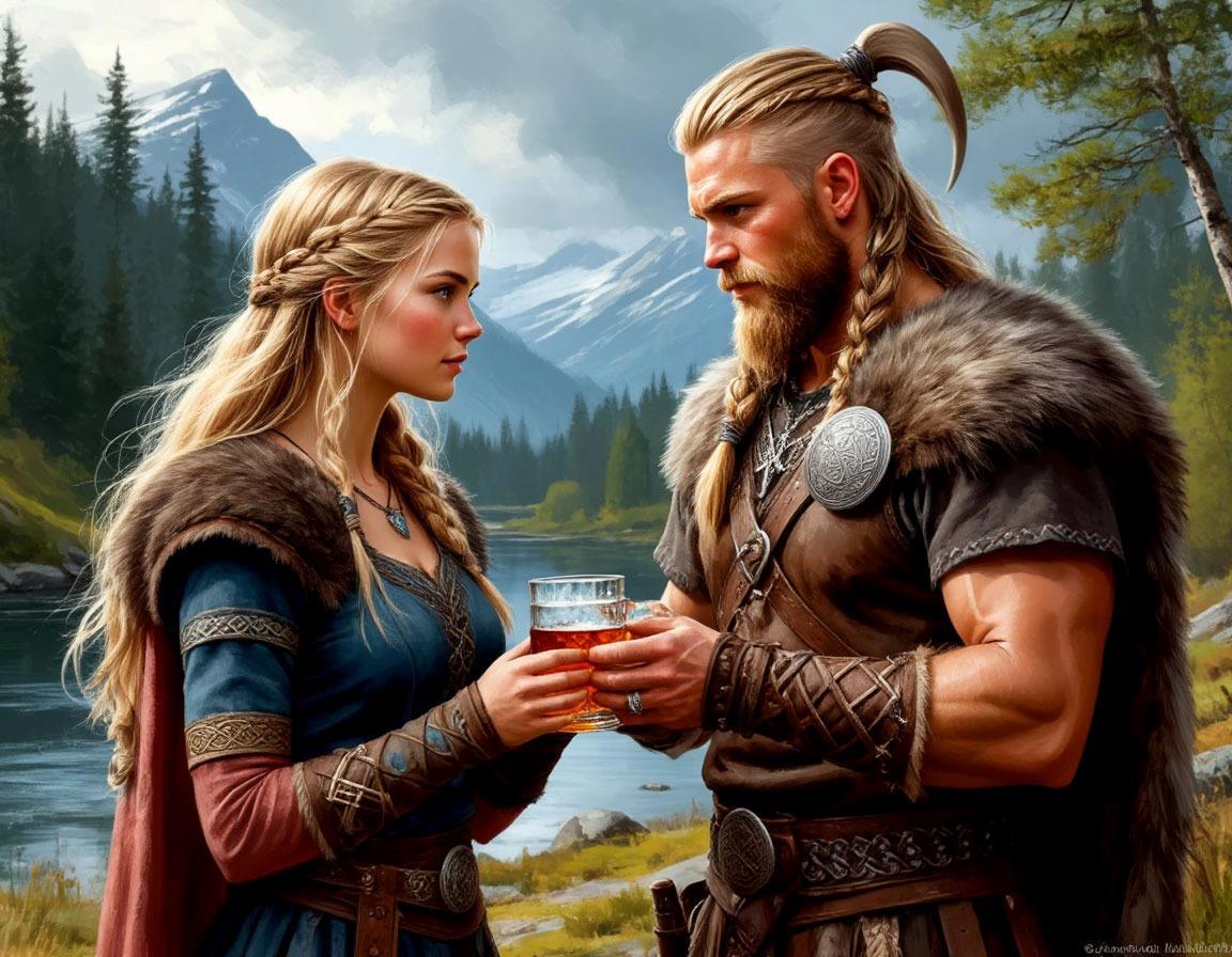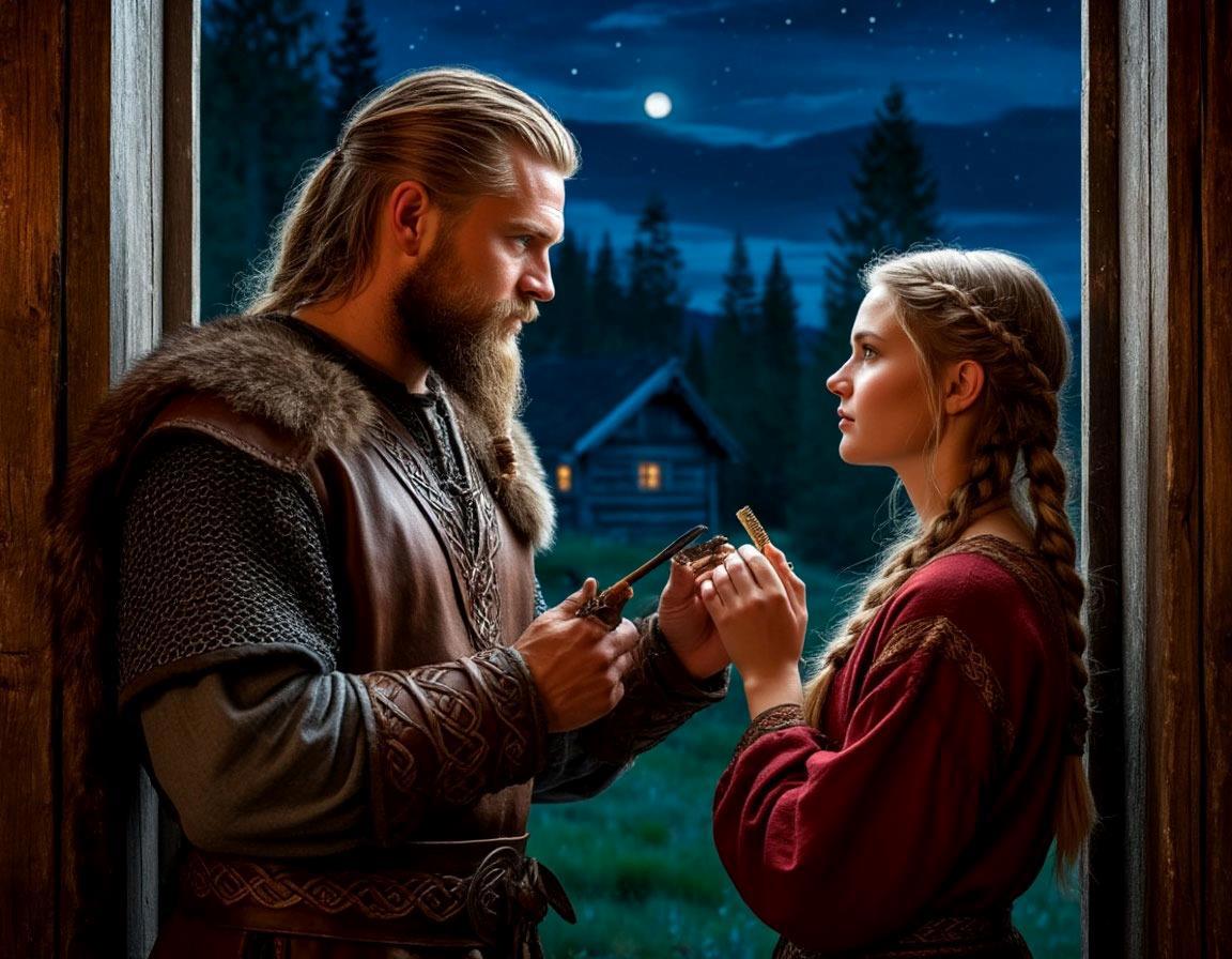 Сильны и помолвочные традиции у викингов. Семьи обменивались мечами. Невеста получала ключи от дома, а жених дарил молоточек Тора. ну и конечно же устраивали пир-сговор