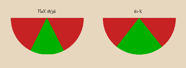И это при равной баллистике. На деле же у немецкой пушки баллистика пониже, и из-за того, что её снаряд дольше летит к точке встречи, цель успевает пролететь большее расстояние. Поэтому на практике немецкая 37-мм зенитка не сможет дать в указанных условиях упреждение по цели с курсовым углом выше 27,4 град. По итогу, пушки смогут поражать цели на следующих вариантах траекторий: