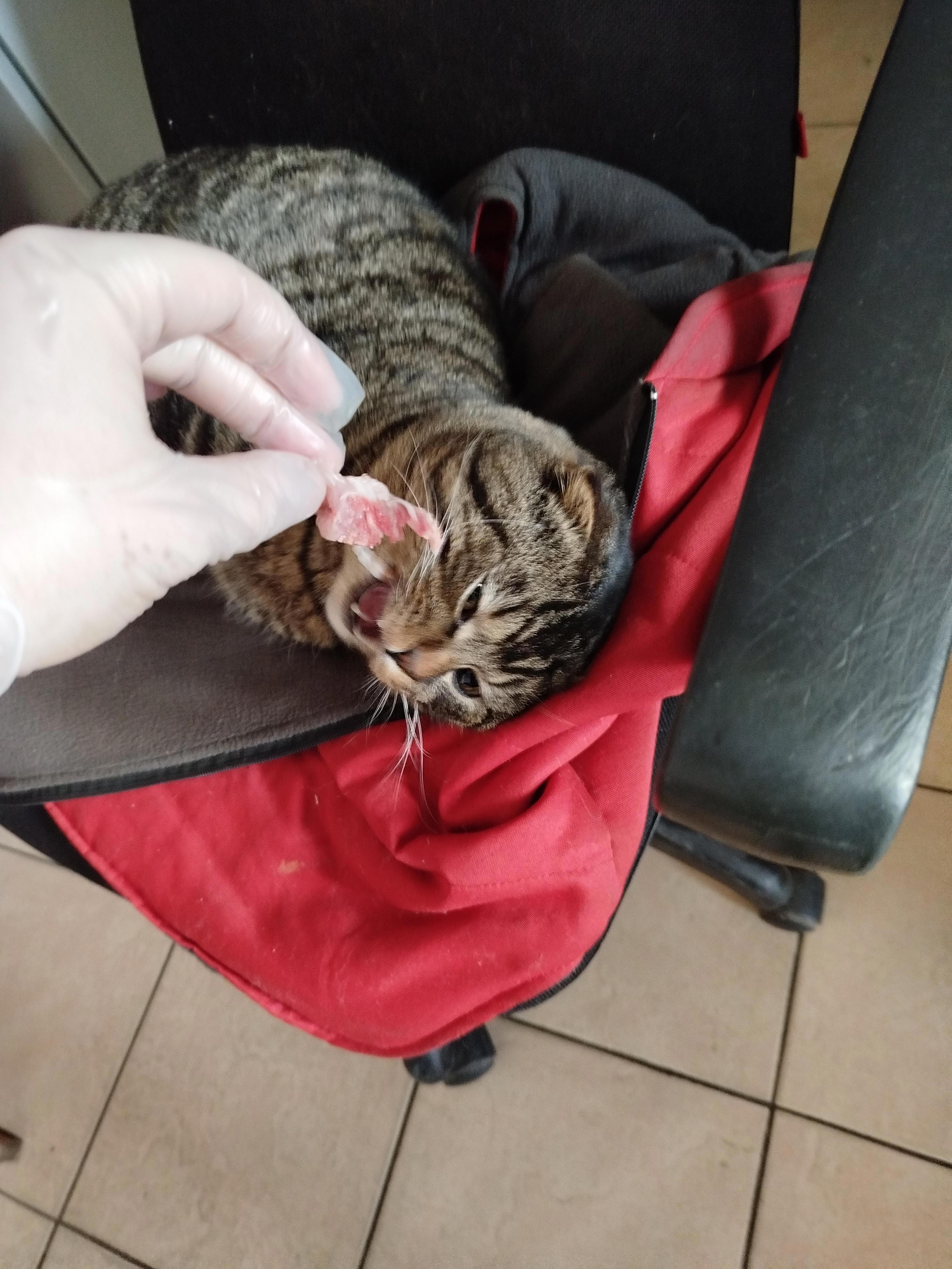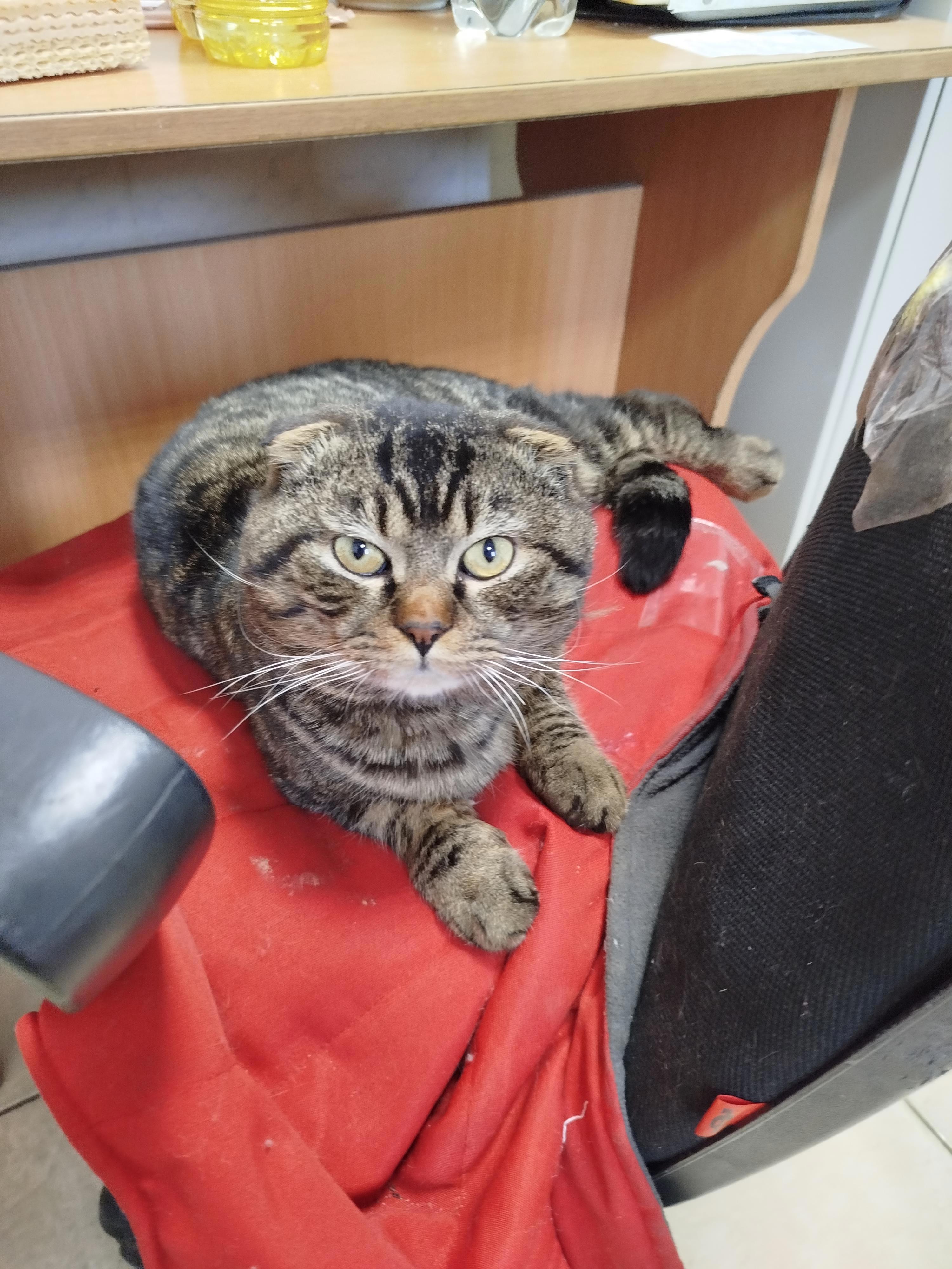К новым людям Сергей Сергеич относится подозрительно, и не готов их подпускать близко. Первый месяц он и меня избегал, и убегал из комнаты персонала сразу же как я туда входил. Возможно за этим есть какая-то история. В магазине он живет года два, и уже прибился сюда с хромой передней правой лапой. Так с ней и живет.