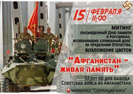 Автор: Игорь Афонский15 февраля 2026 года отмечается 37-я годовщина вывода советских войск из Афганистана – День памяти о россиянах, исполнявших служебный долг за пределами Отечества. В этот день в 1989 году завершилось выполнение боевой задачи Ограниченным контингентом советских войск в Афганистане.