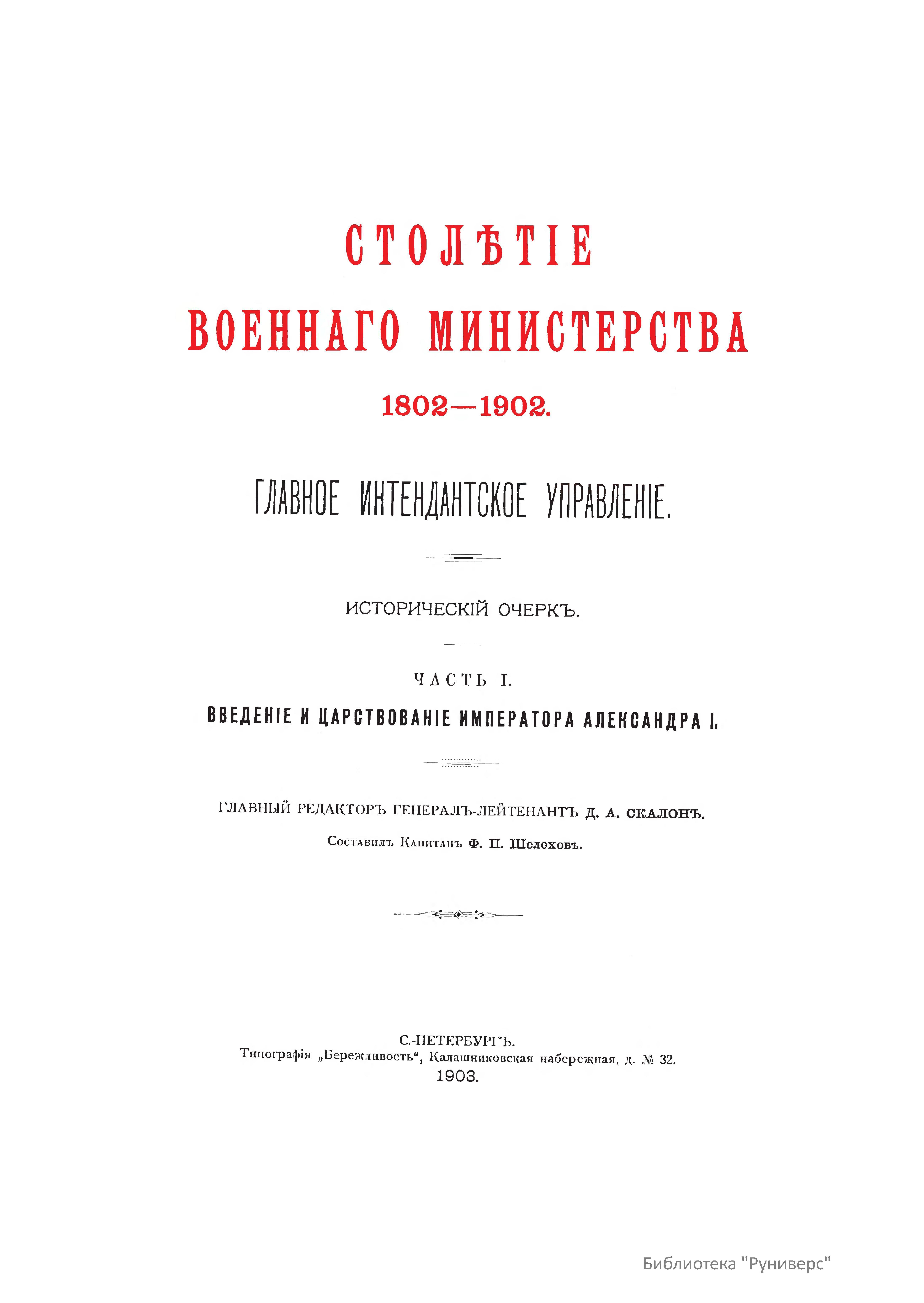 «Столетие военного министерства. 1802 – 1902. Главное интендантское управление»