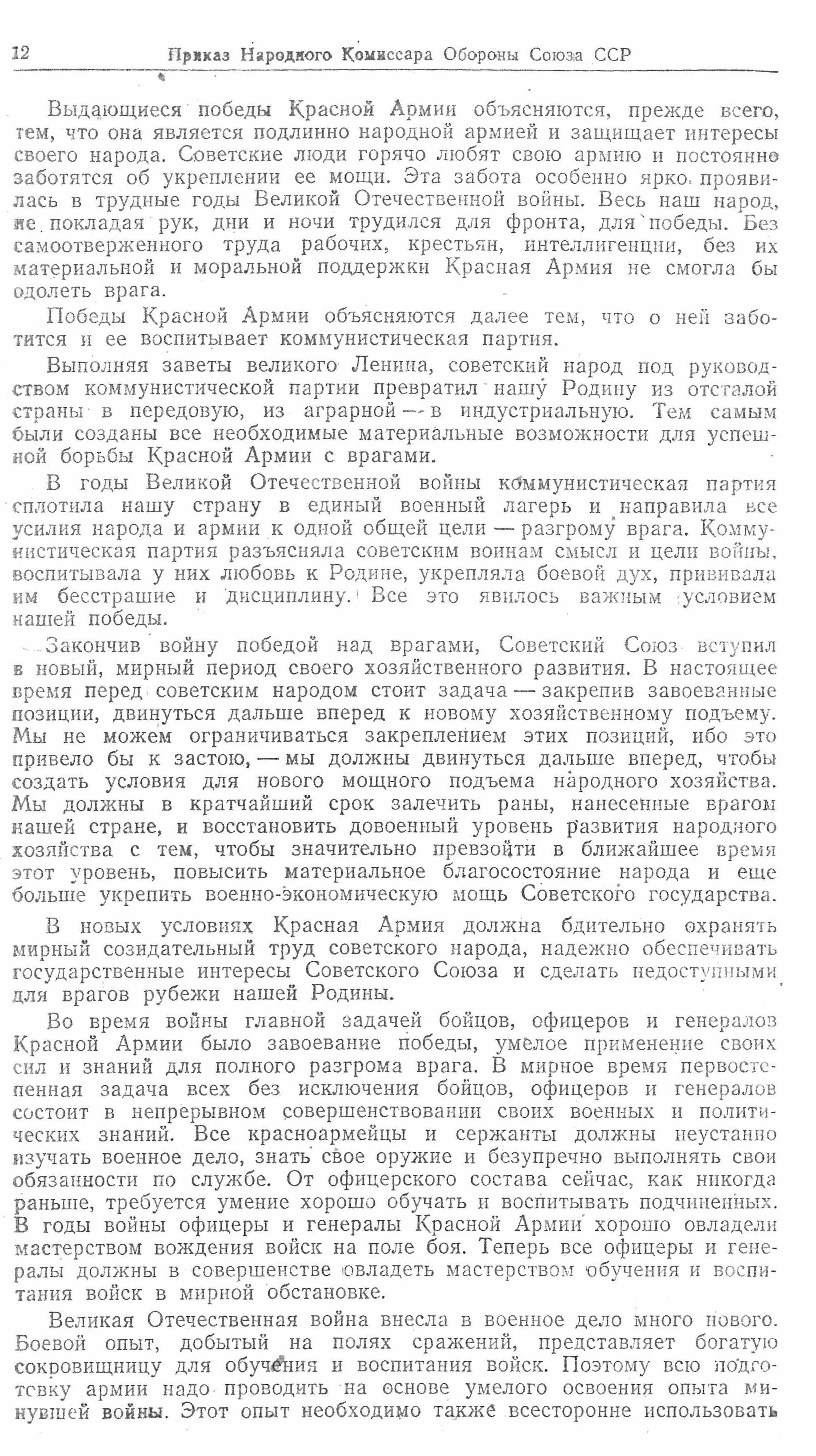 Похоже, это один из последних приказов Наркома обороны СССР. Не все помнят, что 25 февраля 1946 года Наркомат обороны СССР был преобразован в Наркомат Вооруженных Сил СССР, а первым Наркомом ВС СССР и Верховным главнокомандующим Вооруженными Силами Союза ССР был назначен Генералиссимус Советского Союза И.В. Сталин.