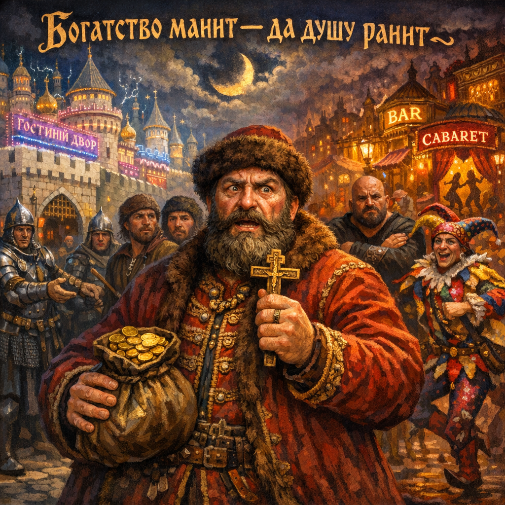 Байка моя не длинная, да складно скроена. Про то, как деревня со столицей повстречалась, как простота на хитрость наткнулась, да еле ноги унесла.