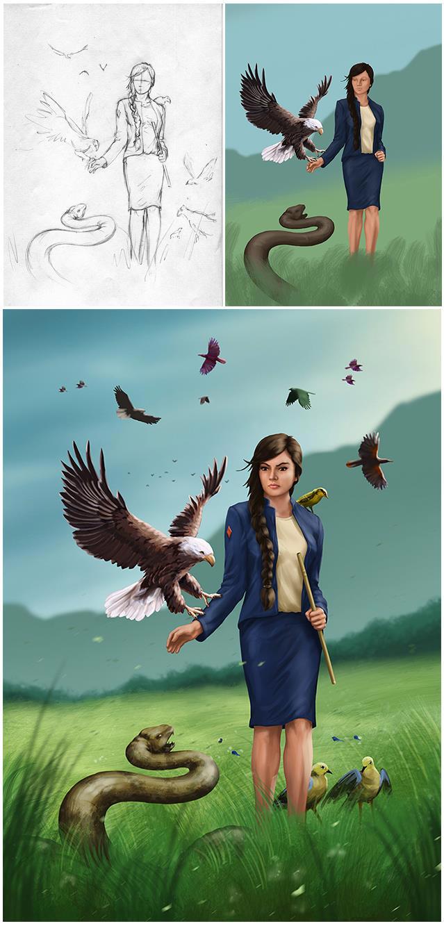 Автор: Салихов ВасильВ окружении своих питомцев Ирина чувствует себя прекрасно! Змея неожиданно подкинула работы, но будьте уверены, эта девушка точно справится!) Новая иллюстрация-портрет для романа Александра Зарубина - "Культурные особенности".