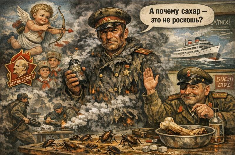 Замполит «Литрушкин» и его эпическая битва с фауной пищеблока при помощи химии 1953 года.
