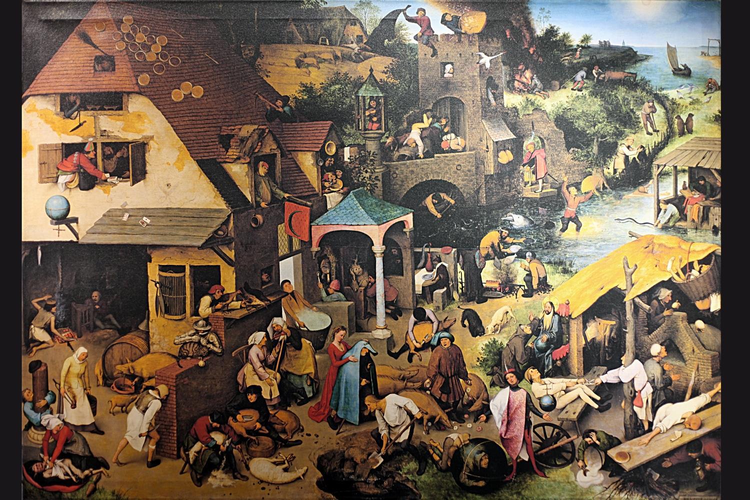 Для поклонников визуальных шарад: список пословиц, использованных Питером Брейгелем в работе «Фламандские пословицы», 1559-й год.