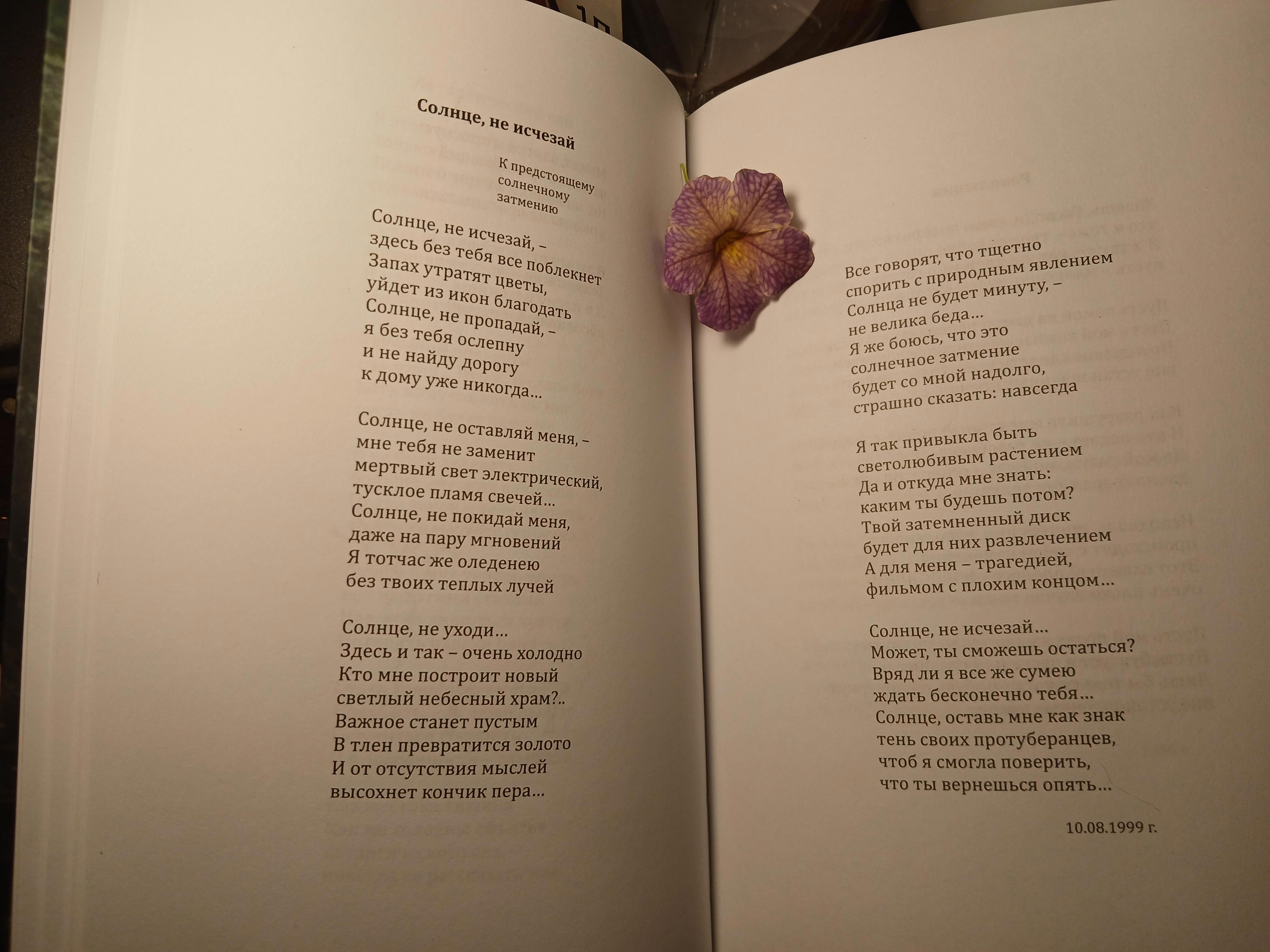 А еще чудесным образом в мои руки попала книга Елены Войнаровской, которая нашла меня спустя много лет благодаря одному прекрасному человеку. Там много пронзительных стихов и текстов песен..И есть один как раз о солнечном затмении.