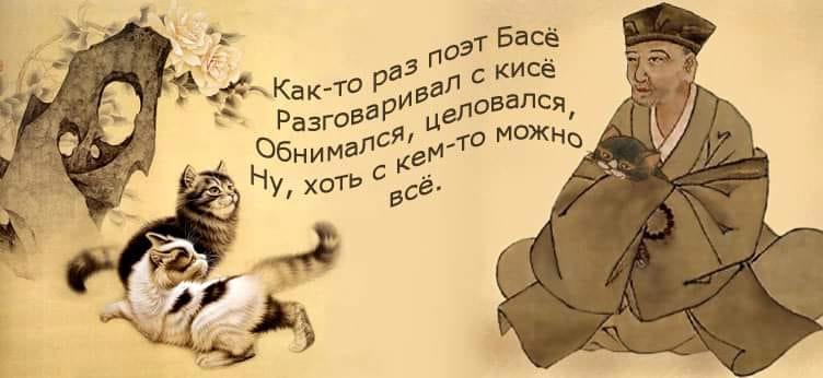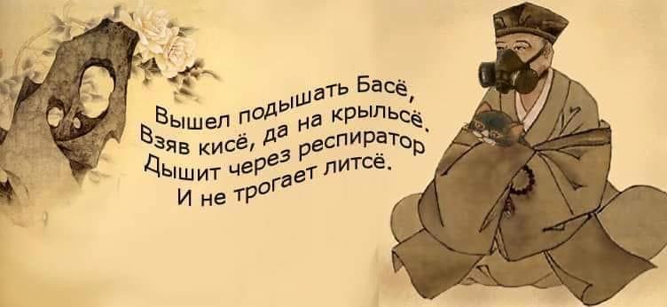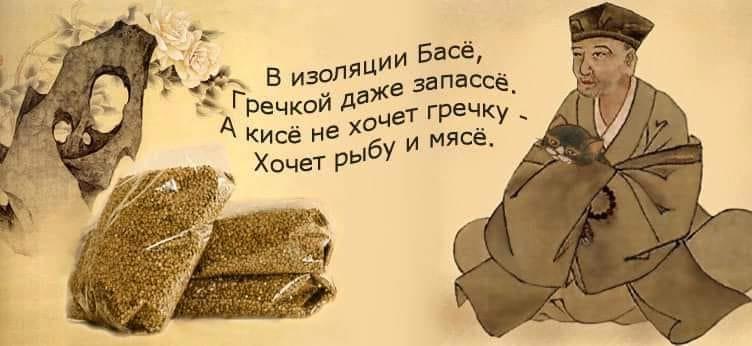 Оказывается, в сети существует обширная серия стихов и картинок про Басё, его котика и про карантин. Наслаждаемся, други!