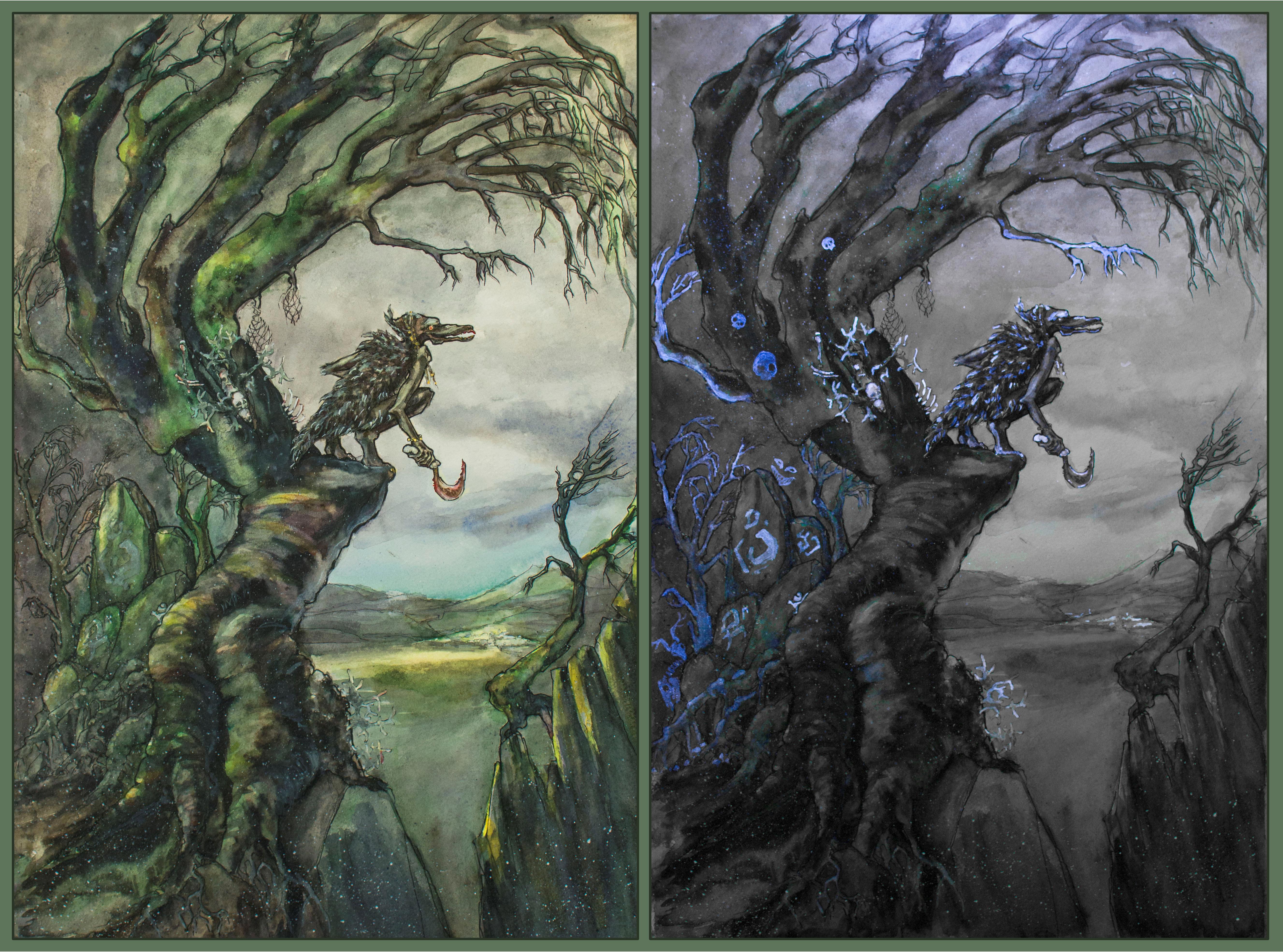 Ну и на сладкое моя акварельная "Гарпия" при обычном свете и в УФ спектре.