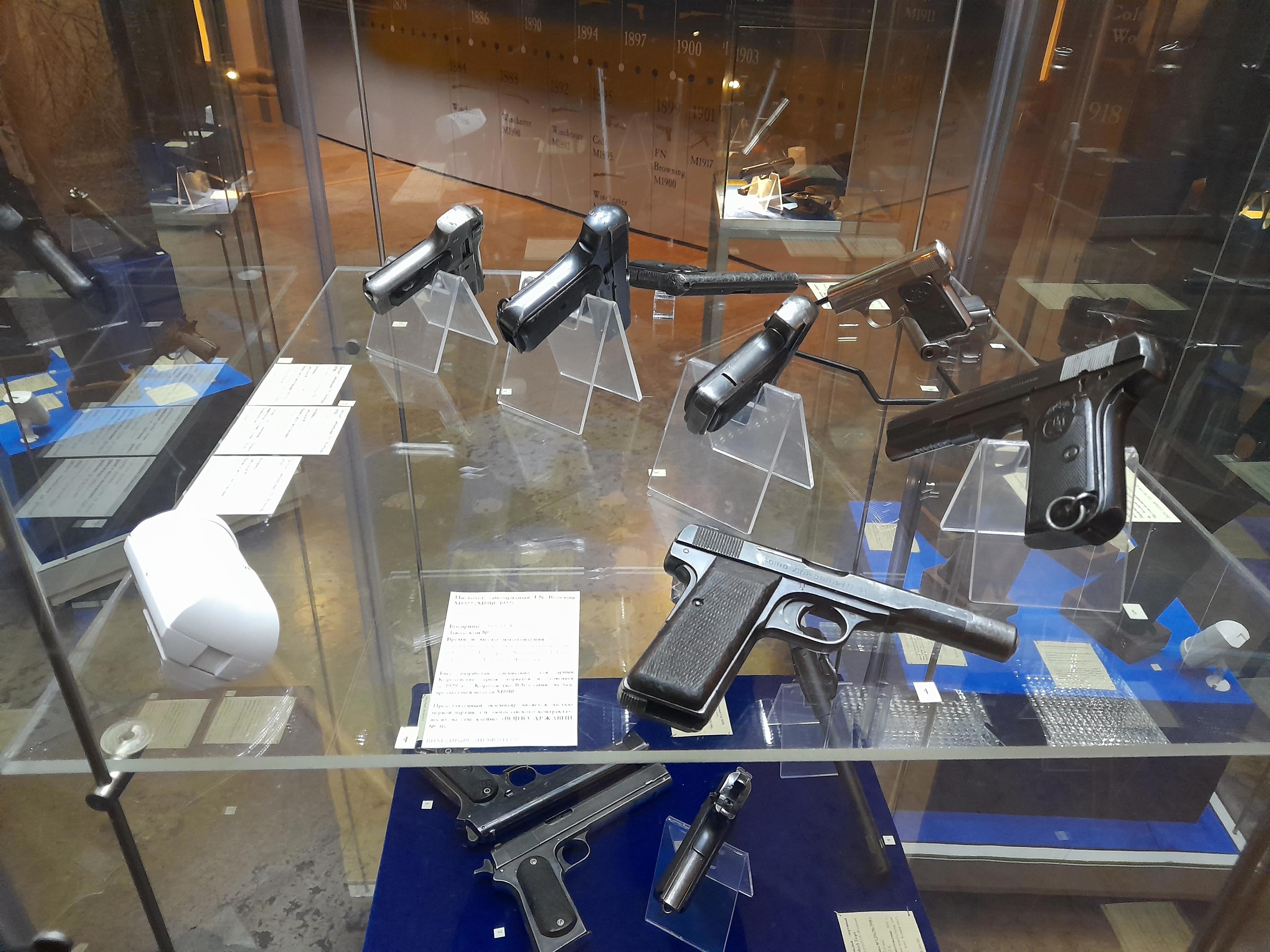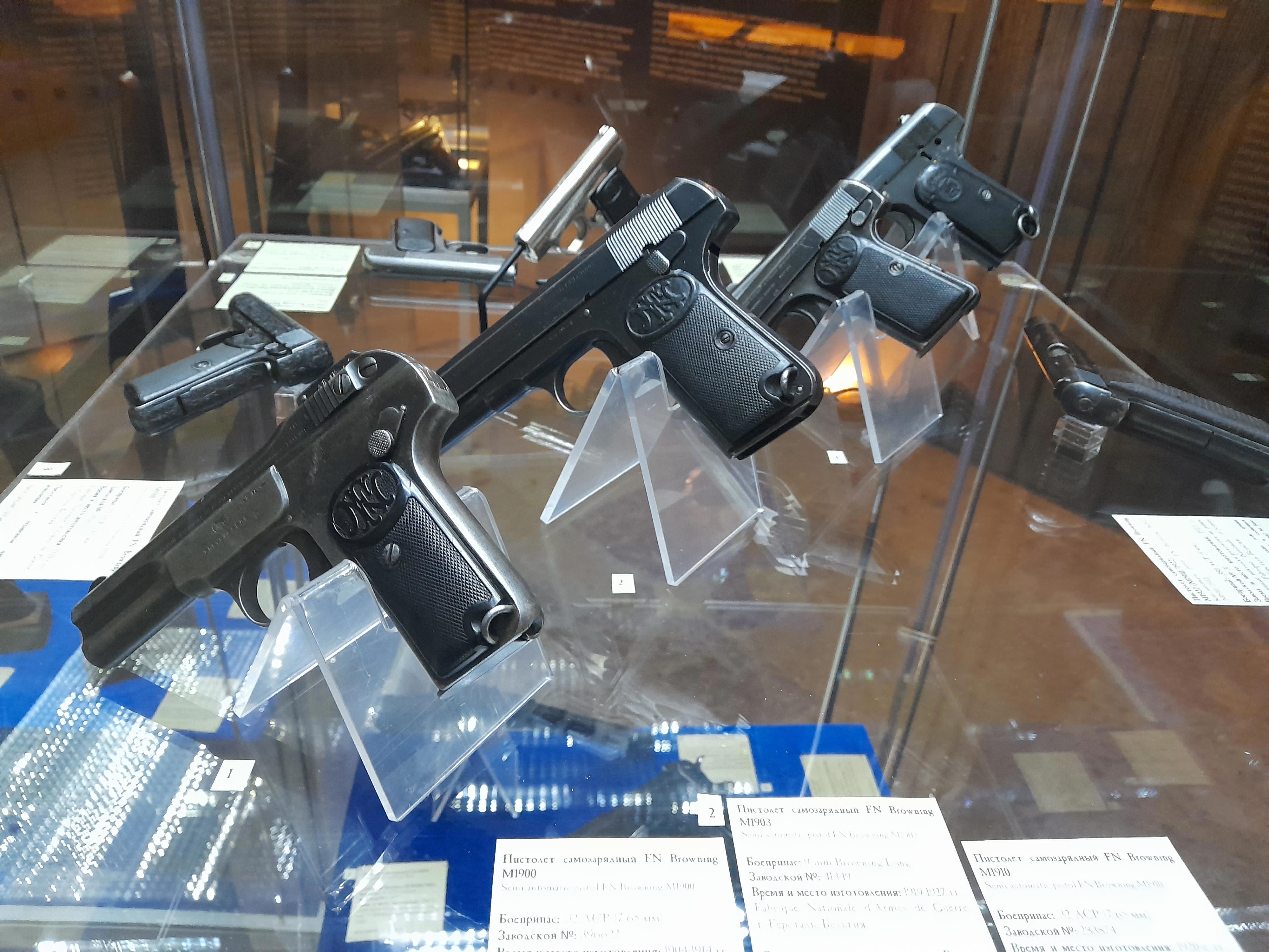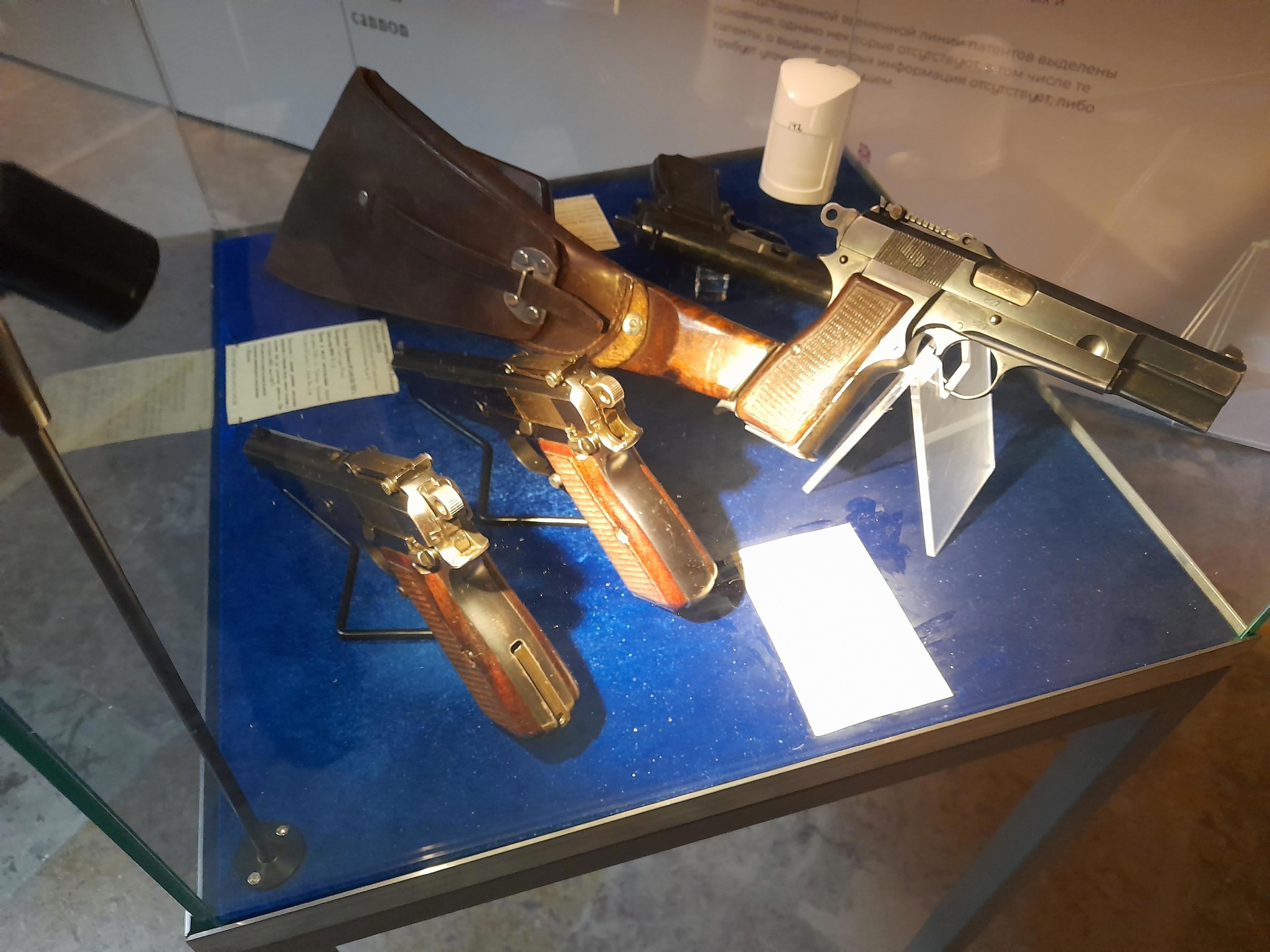 И широчайший выбор пистолетов. Тут один из первых, еще без ФН на рукояти.