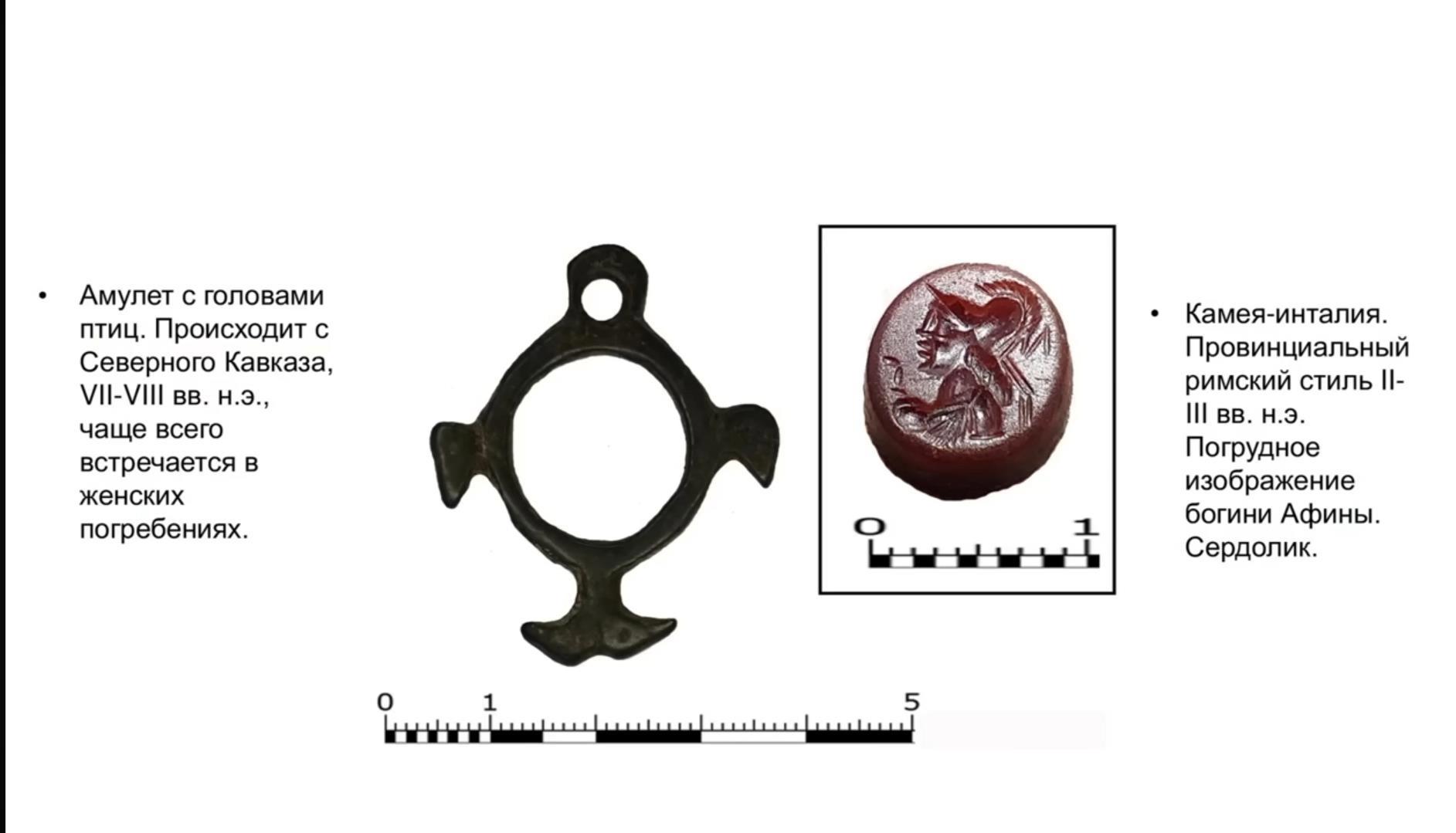 Следовательно, его просто носила аланская женщина. Почему именно аланская? Археологи утверждают, что оно имело какое-то культовое значение. Коротко говоря, эта простая и не особо эстетичная штучка — некий амулет. Вне определённой культуры носить или иметь его — бессмысленно. Кроме того, аланский след подтверждается находкой комплекса бус, характерных именно для этой культуры.