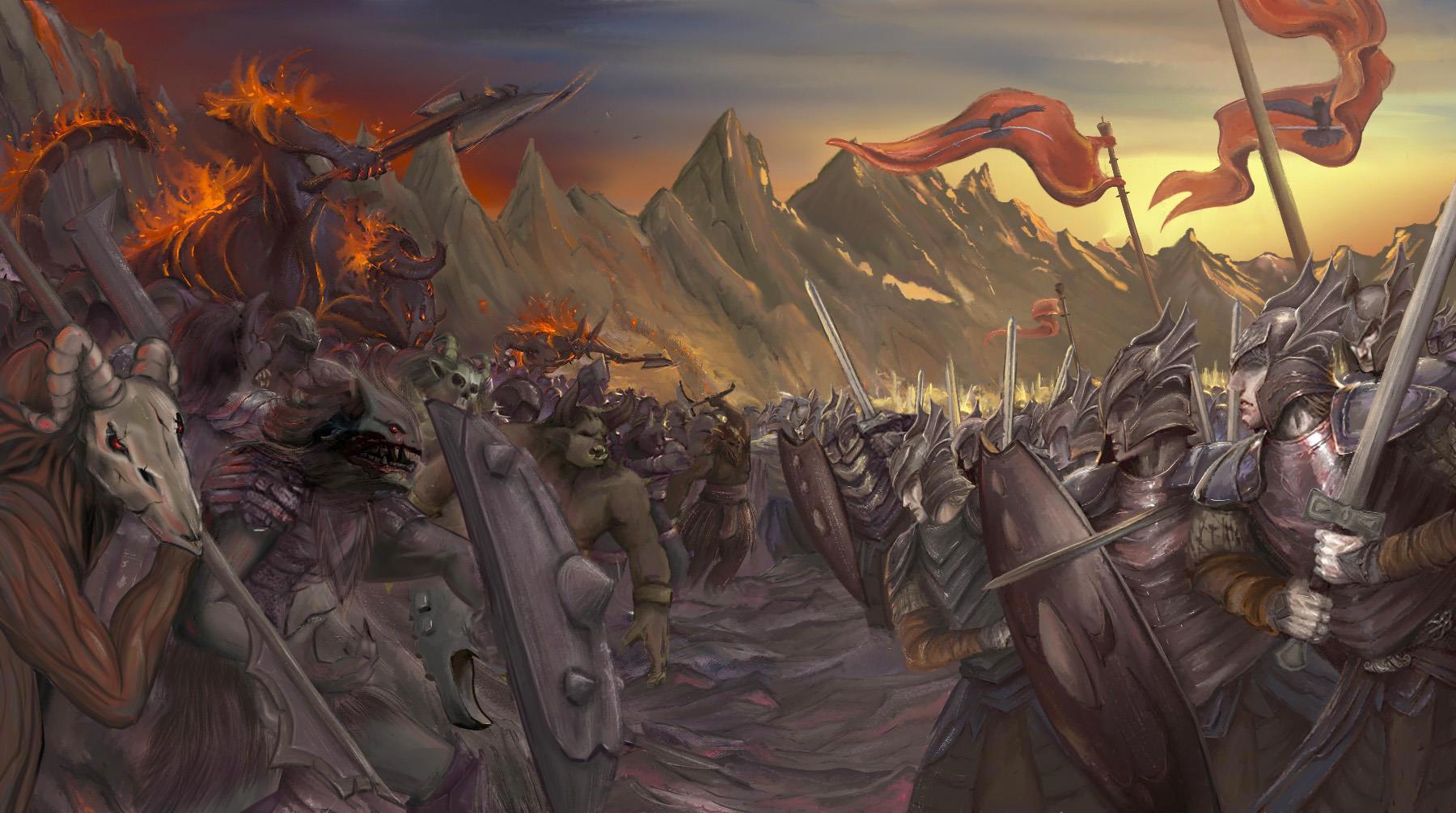 Враг был повсюду, как сплошной лес. Одной густой массой демоны выстроились напротив объединенных сил людей, гномов, эльфов, зеленокожих и горных великанов, но даже этой силы едва хватило бы, чтобы вызвать трепет у войска Пандемония.