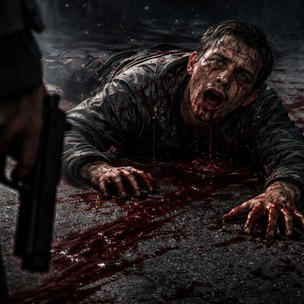 Его тело беспомощно трепыхалось у моих ног. Кровь резкими рывками вырывалась из пробитого тела, его пальцы судорожно цеплялись за асфальт, ломая ногти в бесконечных, беспомощных попытках спастись. Уползти от меня. Вырвать у смерти ещё одну секунду своего жалкого существования.
