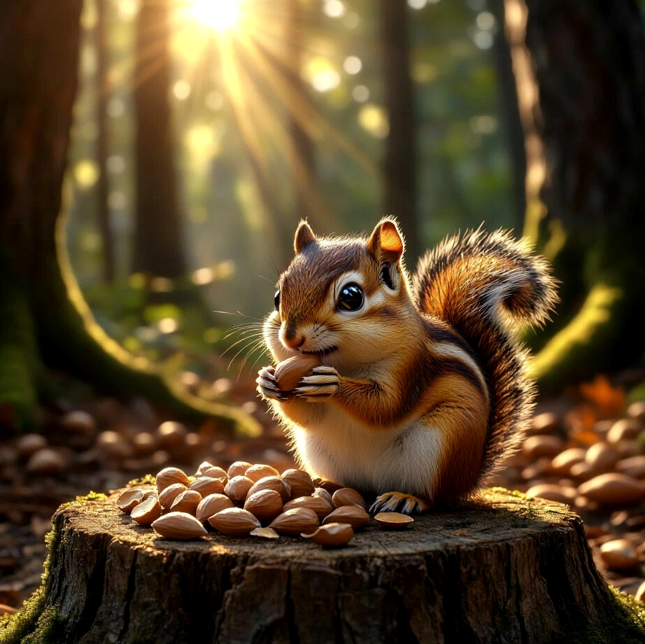 Он очень любит ягоды и орешки. А лучше все вместе и много. А когда лакомства заканчиваются, Бурундук становится грустным. Он вообще парень меланхоличный, есть на то причины. Мечтает о былом, вздыхает… но сразу появляется настроение, как только на пеньке возникает новая горка вкусняшек.