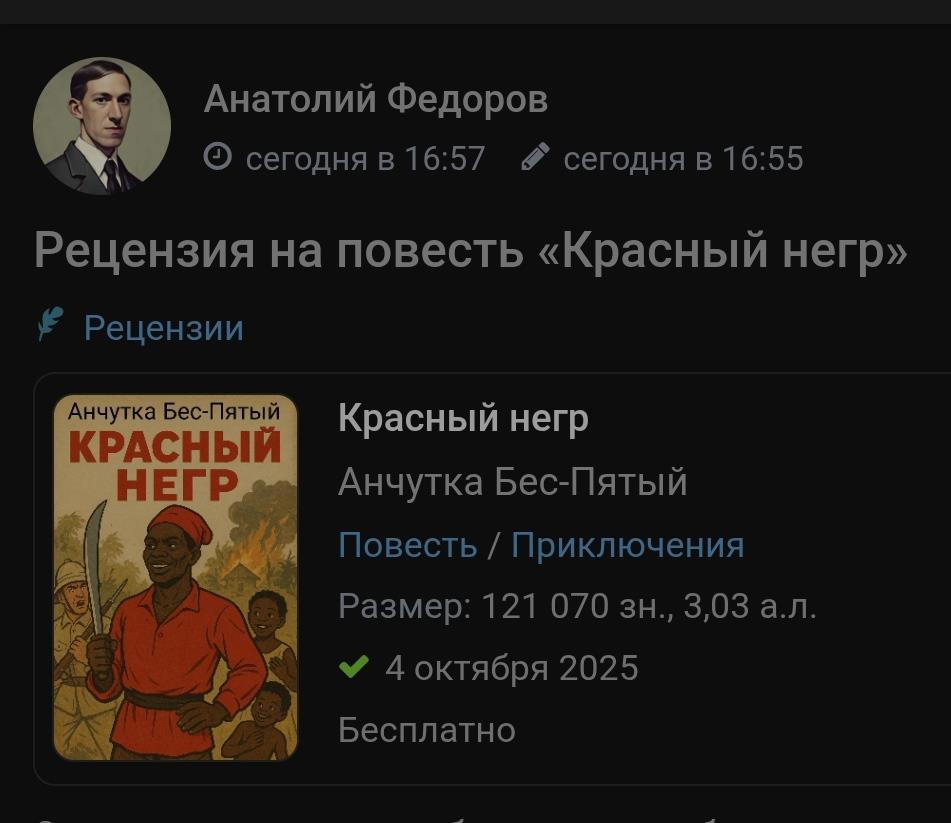 Автор: Анчутка Бес-ПятыйДобрый товарищ Анатолий Федоров почтил своим вниманием мой нереальный соцреализм про Африку.