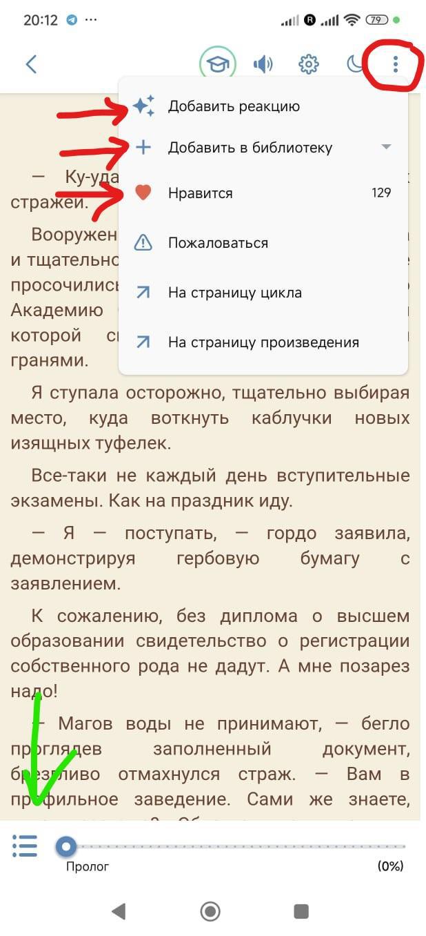 Из читалки можно добавить реакцию, поставить лайк или добавить книгу в библиотеку. Или убрать её из библиотеки, кстати.