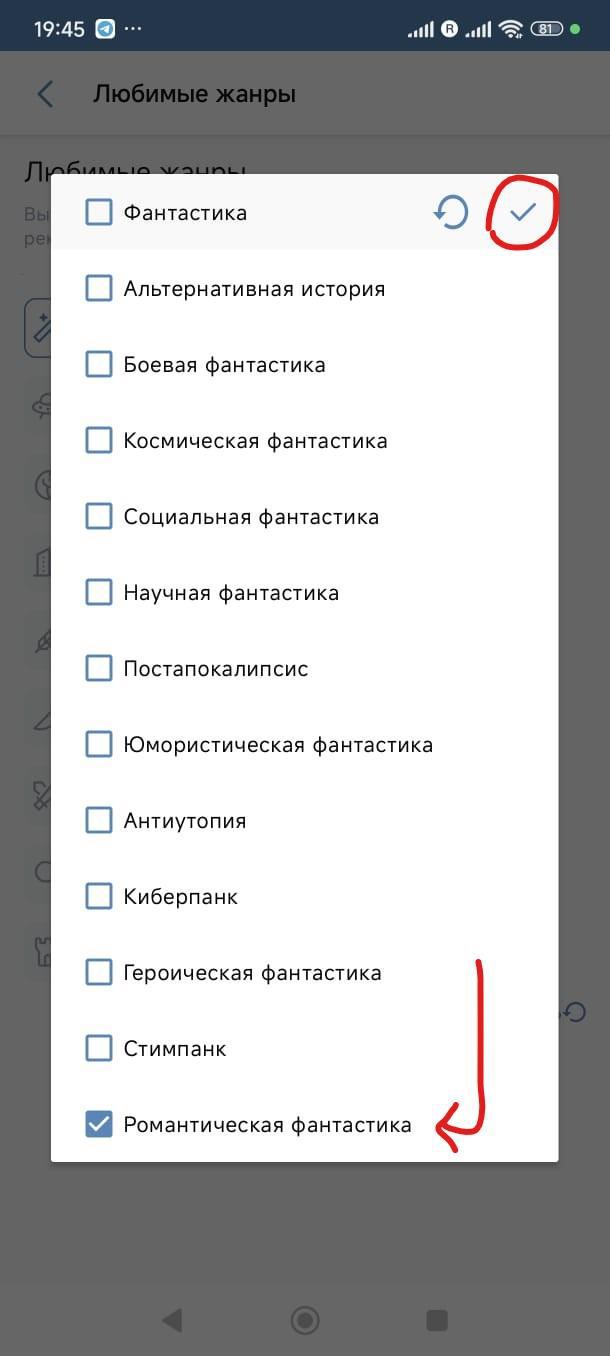 Идём в пункт 3, настраиваем жанры. В первую очередь указываем романтическое фэнтези, любовные романы и романтическую фантастику. Имейте в виду, что если вы укажете "Бытовое фэнтези", то появится всё бытовое, которое есть на сайте. Мальчики тоже прогрессорствуют, так что вы получите не Хозяйку тыквенного огорода, а Хозяина тыквенной фермы. Не забываем нажать на галочку.