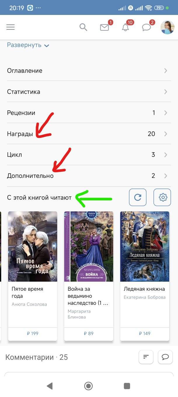 Кстати, под каждой книгой вам предложат похожие книги. И виджет "С этой книгой читают", помеченный зелёной стрелочкой, на АТ работает прекрасно, его никто не настраивает ручками, там действительно стоят книги, которые могут вам понравиться. Его можно обновлять. Подборка не зависит от популярности книги, только ориентирована на те книги, которые выбирали пользователи, также читавшие книгу, которую сейчас читаете вы. Вкусы, конечно, не всегда совпадают, но имеет смысл присмотреться.