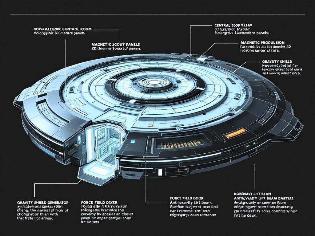- Изображение изнутри корабля: Показана средняя секция корабля диаметром 60 метров с лифтовой шахтой 6 метров — комната для отдыха экипажа. Внутри был специальный экран диаметром 5 метров, который увидел Боб.