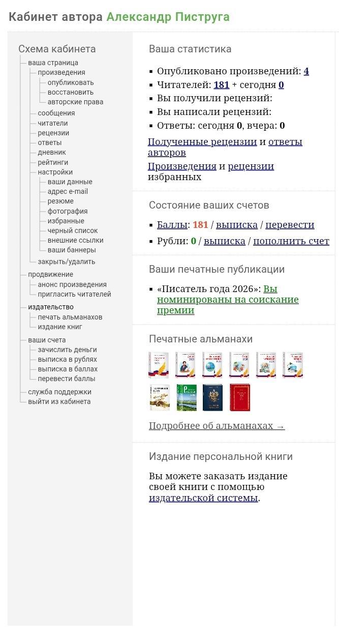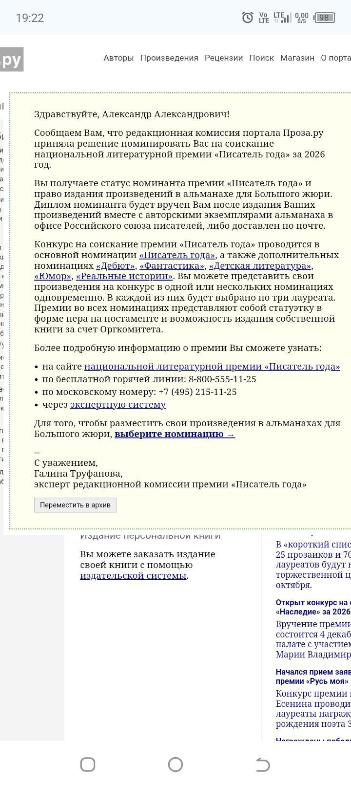 Номинирован лауреатом премии писатель года 2026
