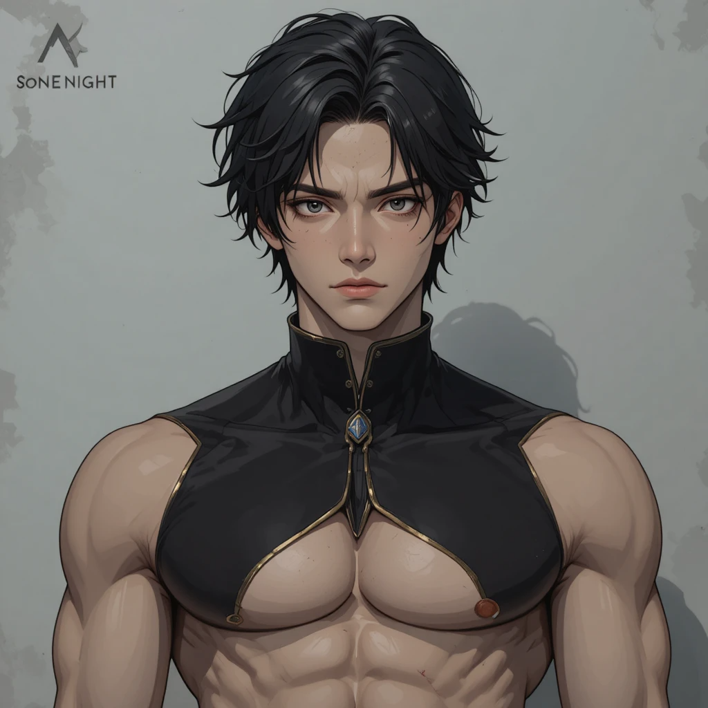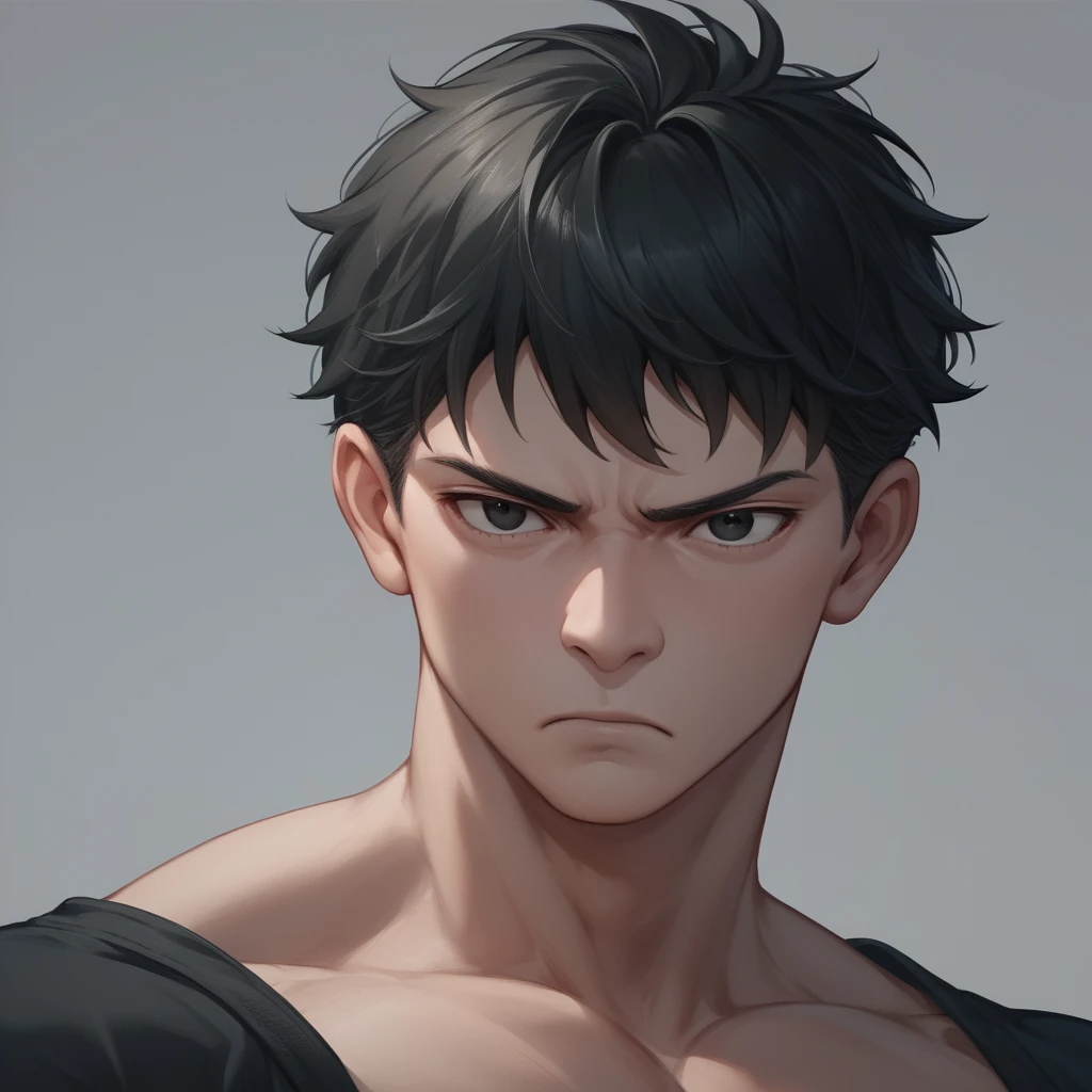 невысокий молодой мужчина черноволосый, черноглазый, прямой нос, стройный, мускулистый, серьезный, тридцать лет