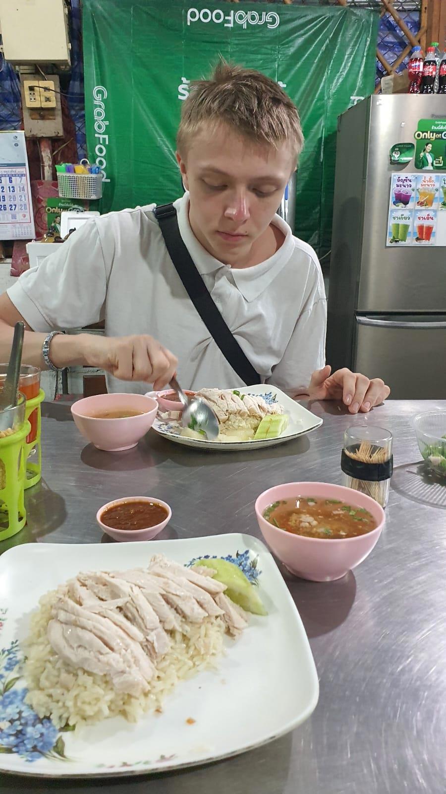 Около геста, где я снимаю на зиму номер вот уже более 20 лет, существует домашнее кафе. Ну как кафе — пара столиков на улице, печка. Работает там семейная пара, у которой я ужинаю без малого четверть века. За это время у них успел вырасти сын, который сейчас работает официантом. Так вот они тоже готовят Кхао ман кай — и по мнению Андрея у них получается вкуснее.