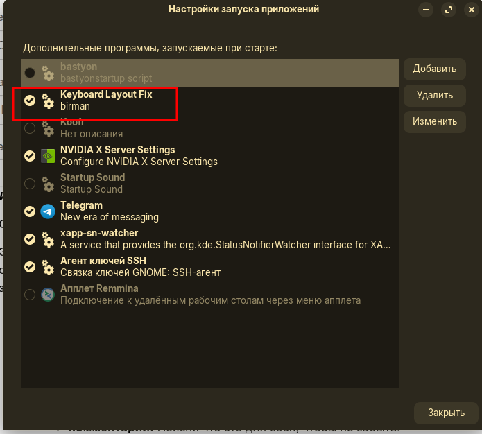 Keyboard Layout Fix(или любое другое). - Команда: Вставь свою строку целиком: