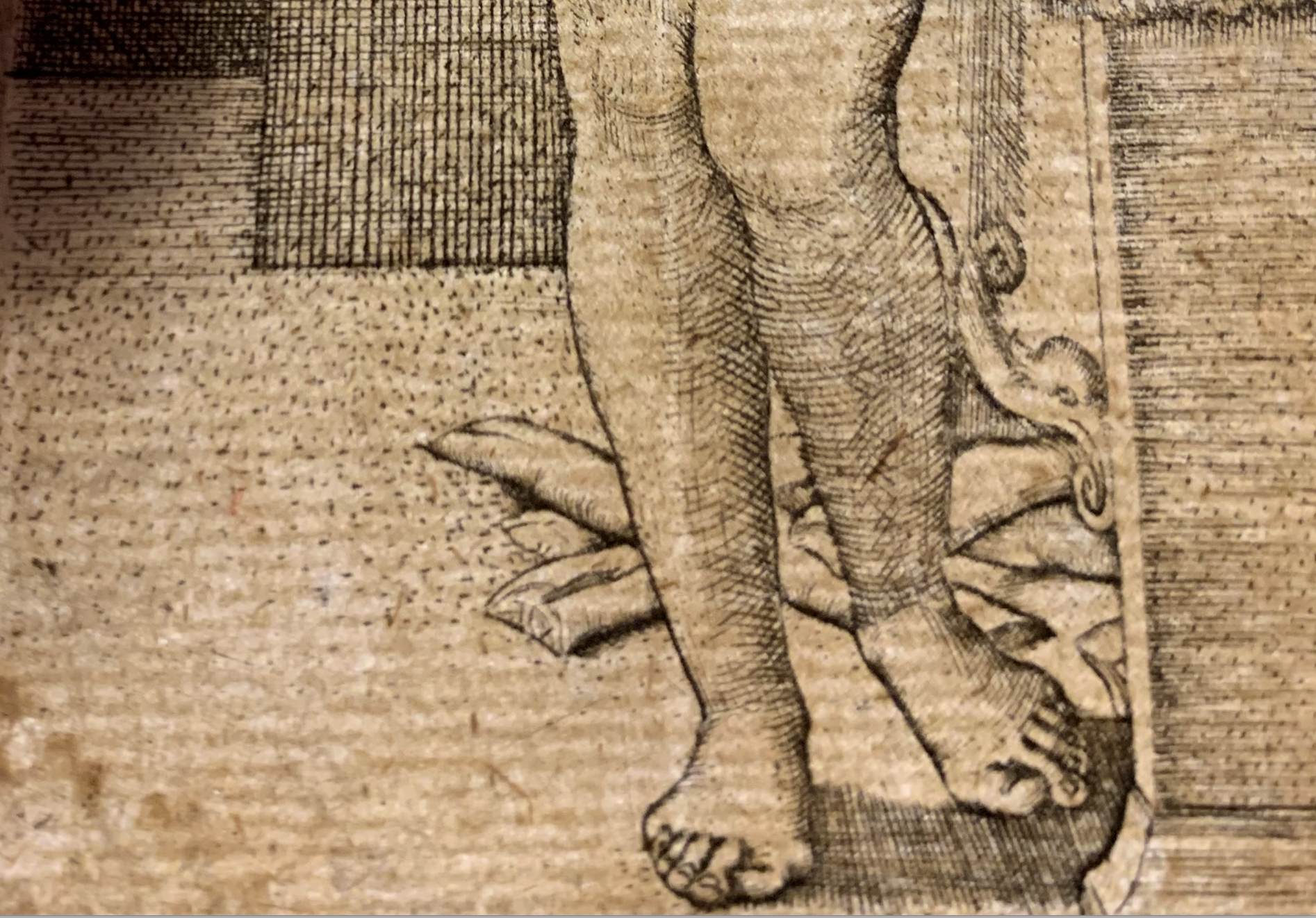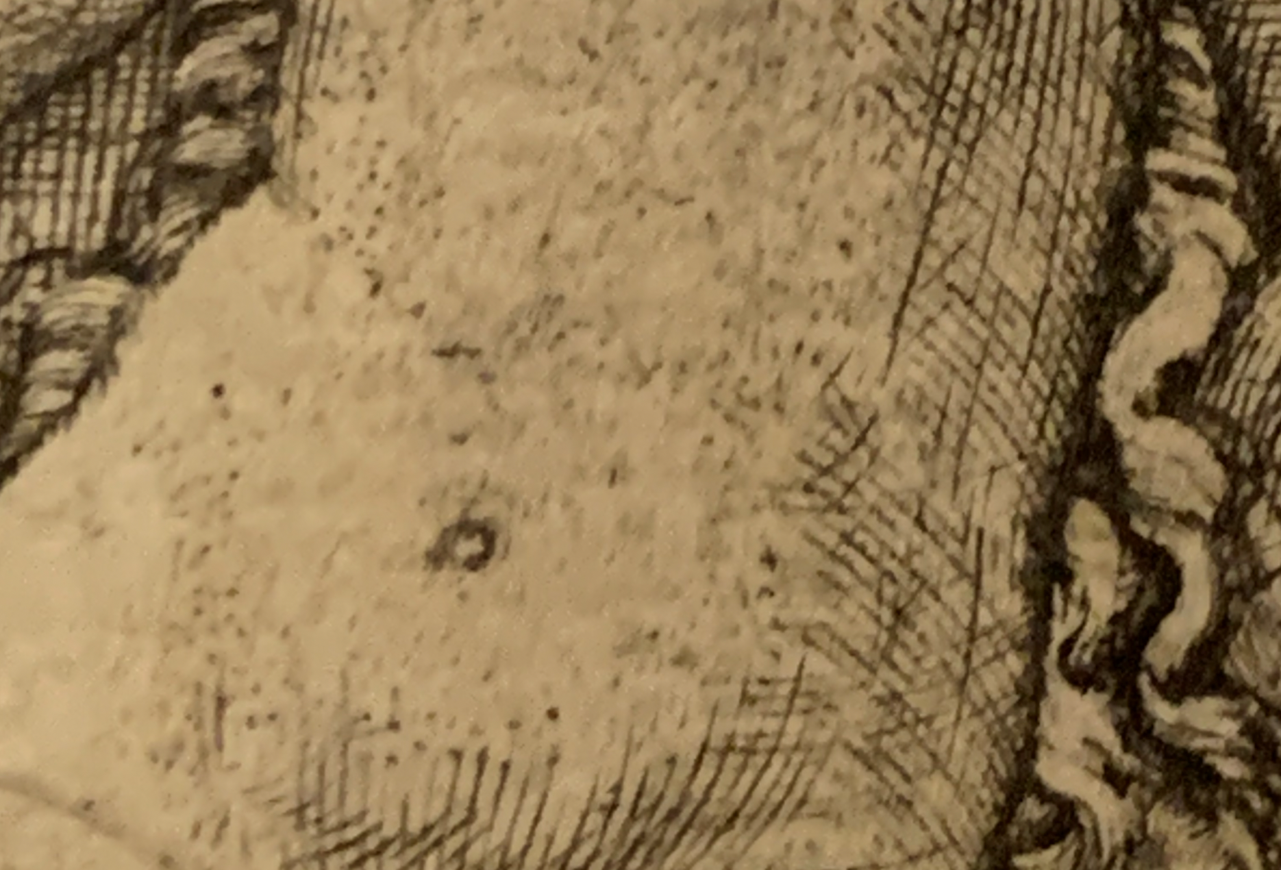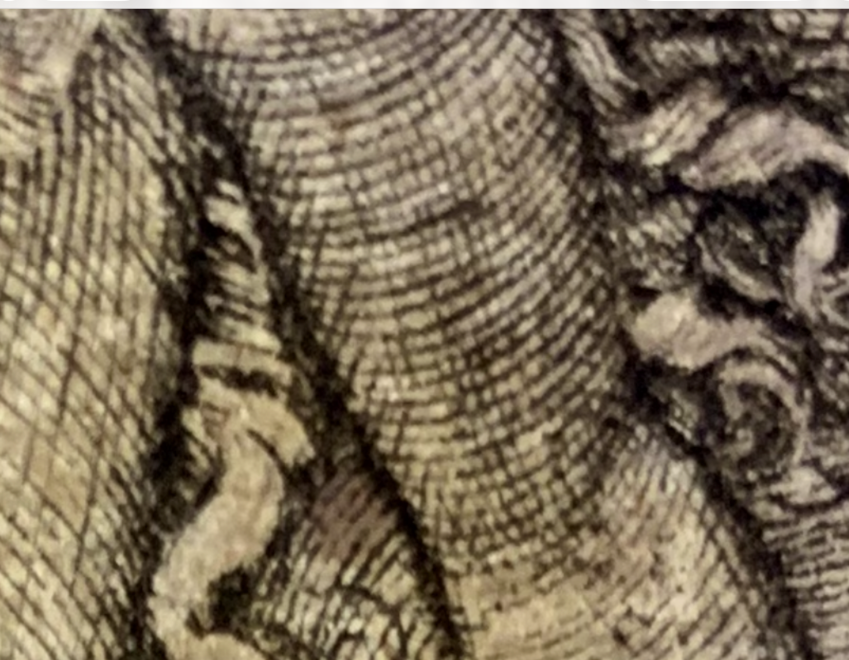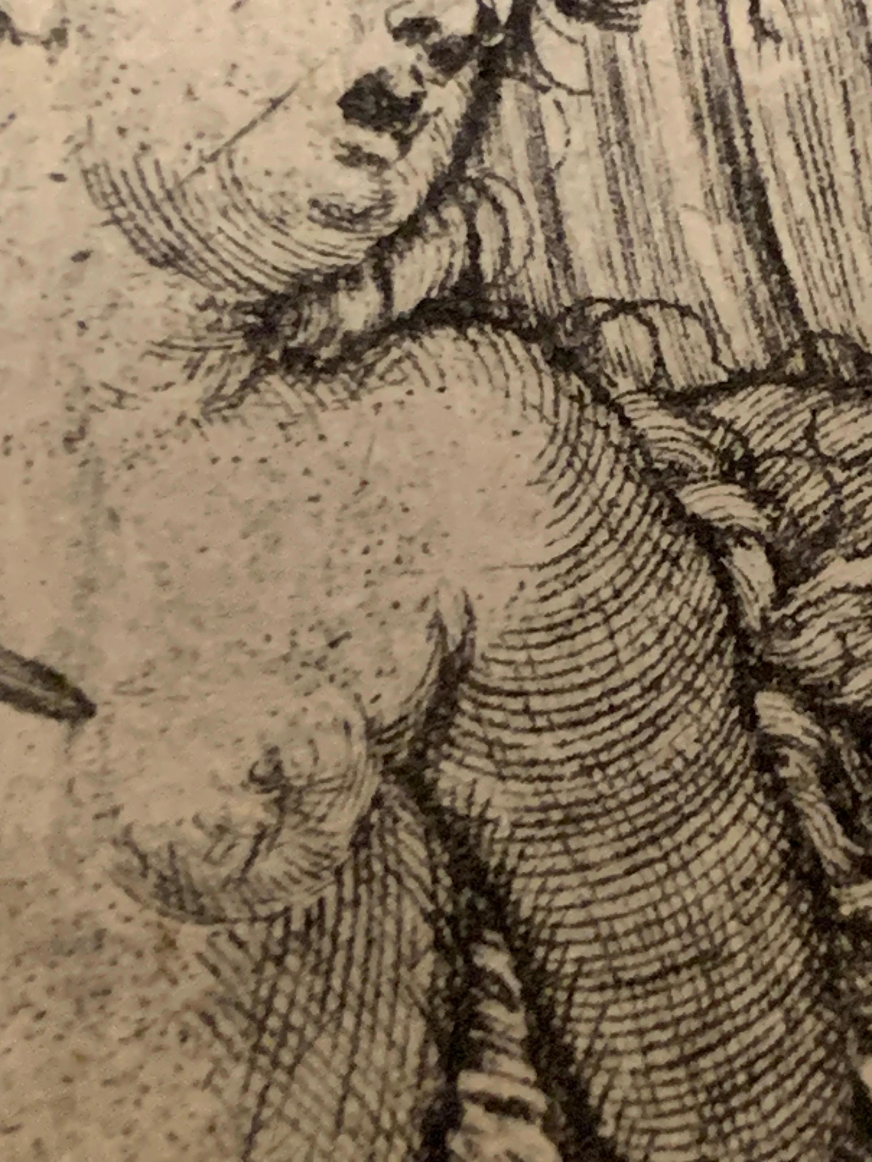 «Нежность» и мягкость изображениясоздается невероятно сложной геометрической сеткой. То, что похоже на расширяющиеся ромбы, — это вершина мастерства резцовой гравюры того времени.