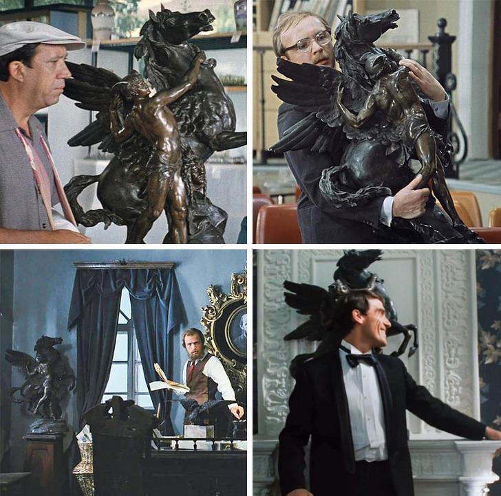 Конь из бронзы, которого носил Новосельцев, также является «звездой» фильмов «Бриллиантовая рука», «Формула любви», «Старый Новый год», «Семнадцать мгновений весны» и «Ширли-мырли».