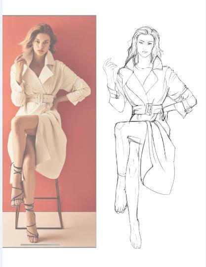 Лед, ледышка, что-то холодное. С этой мыслью я нашла фото в сети, где стройная блондинка в белом костюме, шагает по улицам серого города. Из плюсов: отличная разбивка по планам (заставляющая взгляд зрителя перемещаться от важного к менее важному), чувство движения, концентрация на модели. Из минусов: летящие штаны. И все! при попытке передать ее движение, мой эскиз потерпел фиаско. По ощущениям, она идет вперед грудью, по структуре - вперед выступает таз.