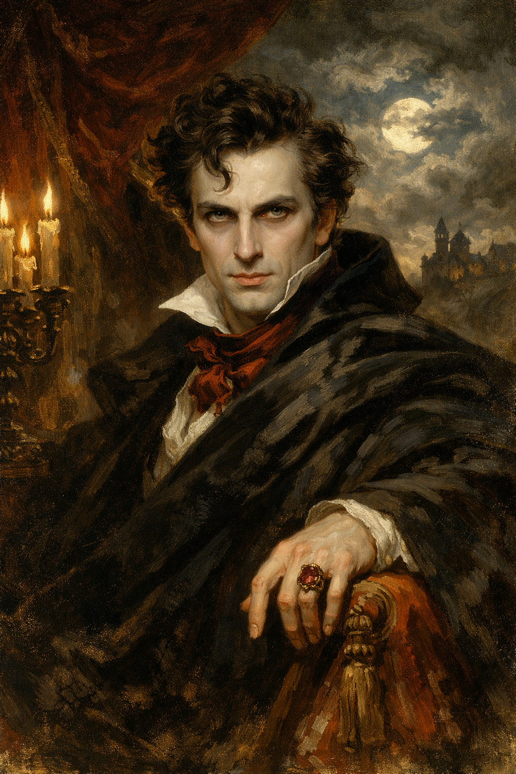 PS - Попросил нейросеть нарисовать портрет лорда Рутвена в стиле портретов 19-го века. Получилось забавно