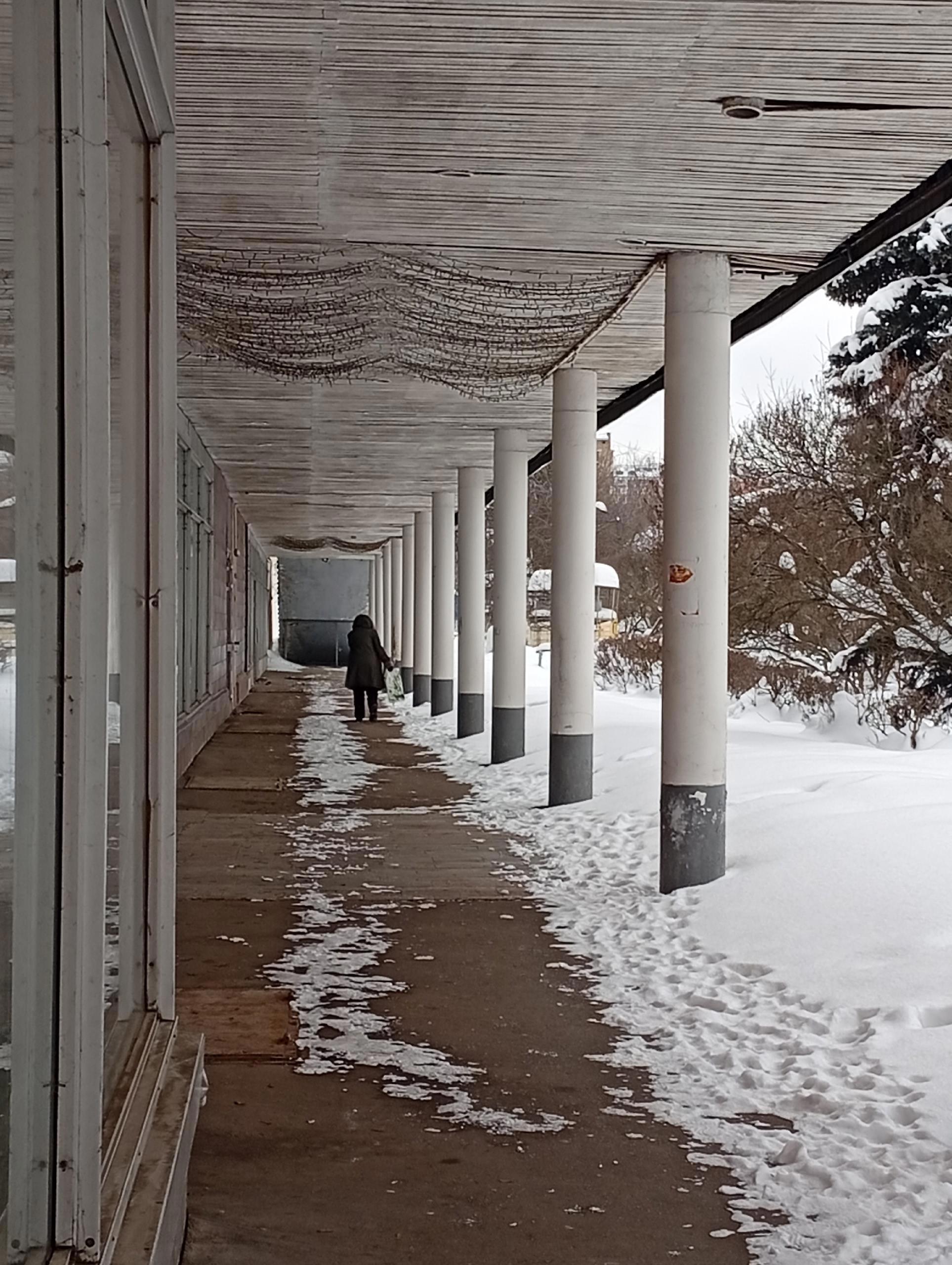 К сожалению, нынче зима и не видно плит, что лежат перед универмагам. В детстве я очень любила прыгать с плиты на плиту, игра заключалась в том, чтобы типа на швы не наступить. Давно не обращала внимания, кажется на моем фото от 2017 года это они лежат. Попробую вернуться и сделать еще парочку снимков когда потеплеет. Если, конечно, не снесут к тому времени...